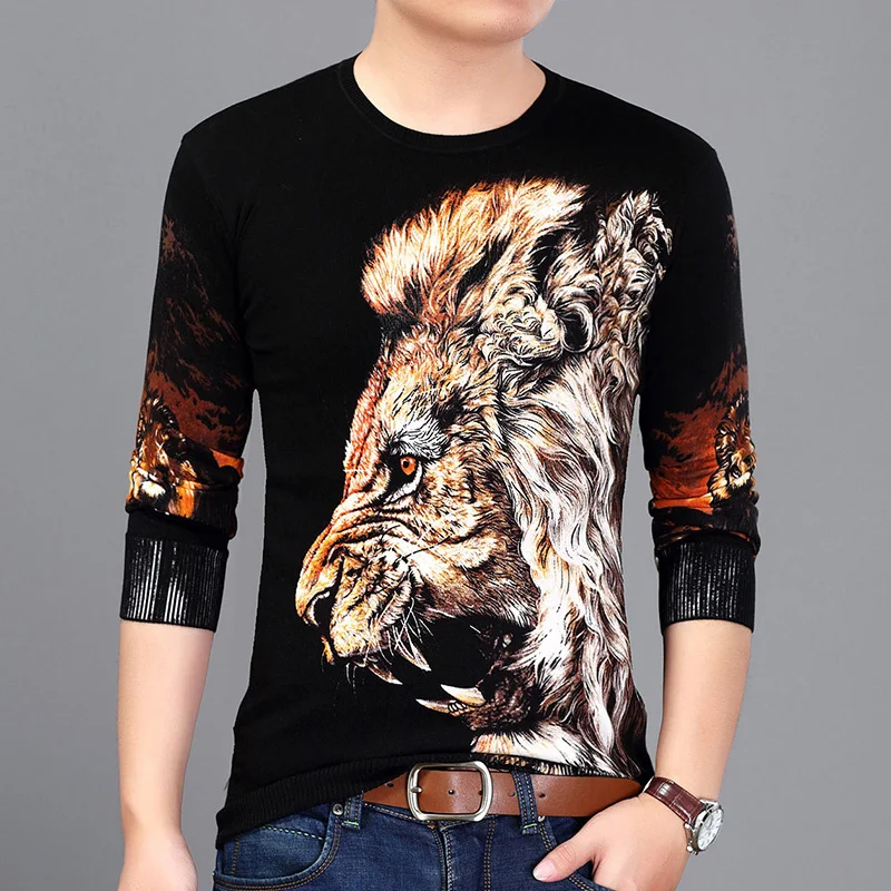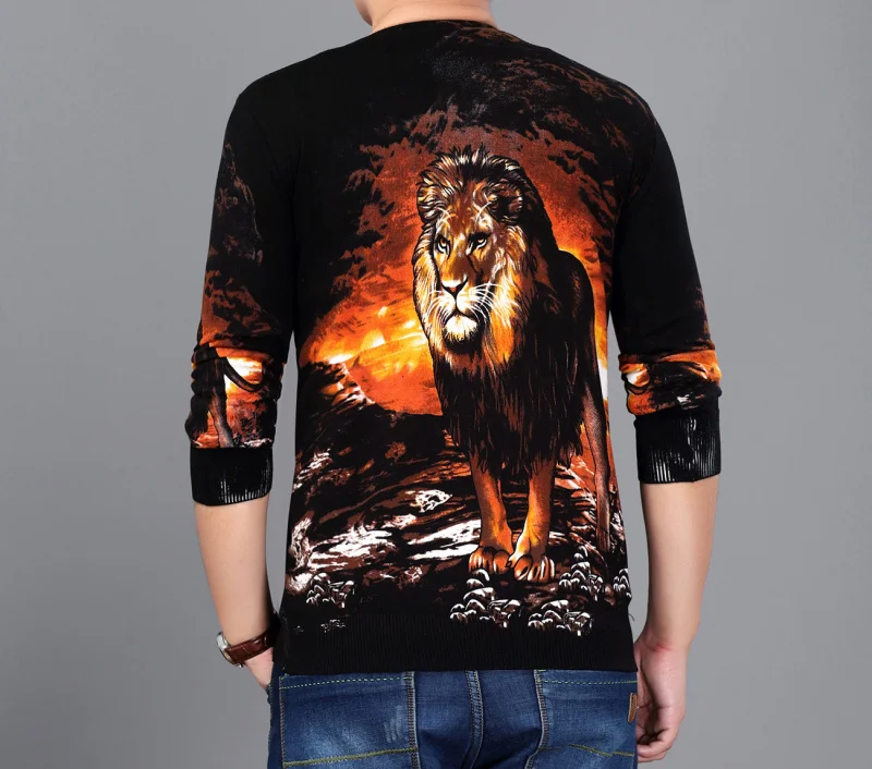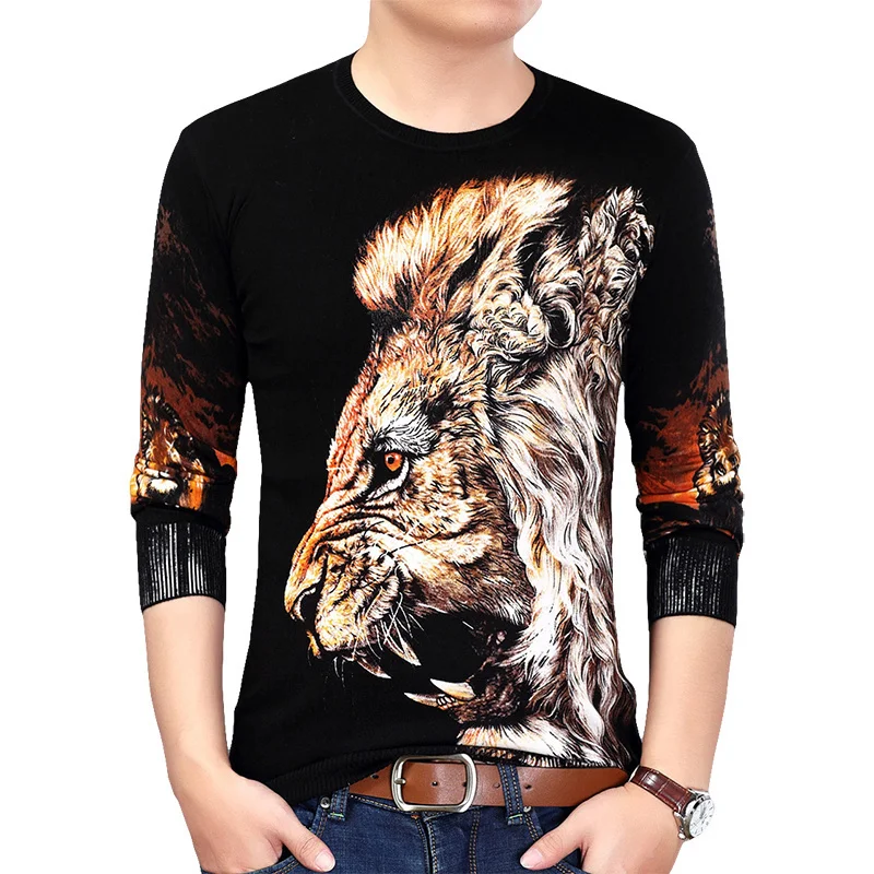 Мужской свитер Erkek Kazak, облегающий свитер с рисунком головы льва на весну 2019
