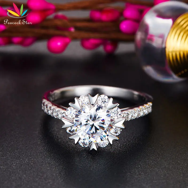 Павлин звезды Свадебные Обручение кольца с цветочными мотивами, покрытый светлым сплошной 925 пробы серебро обещание Свадебные украшения CFR8319