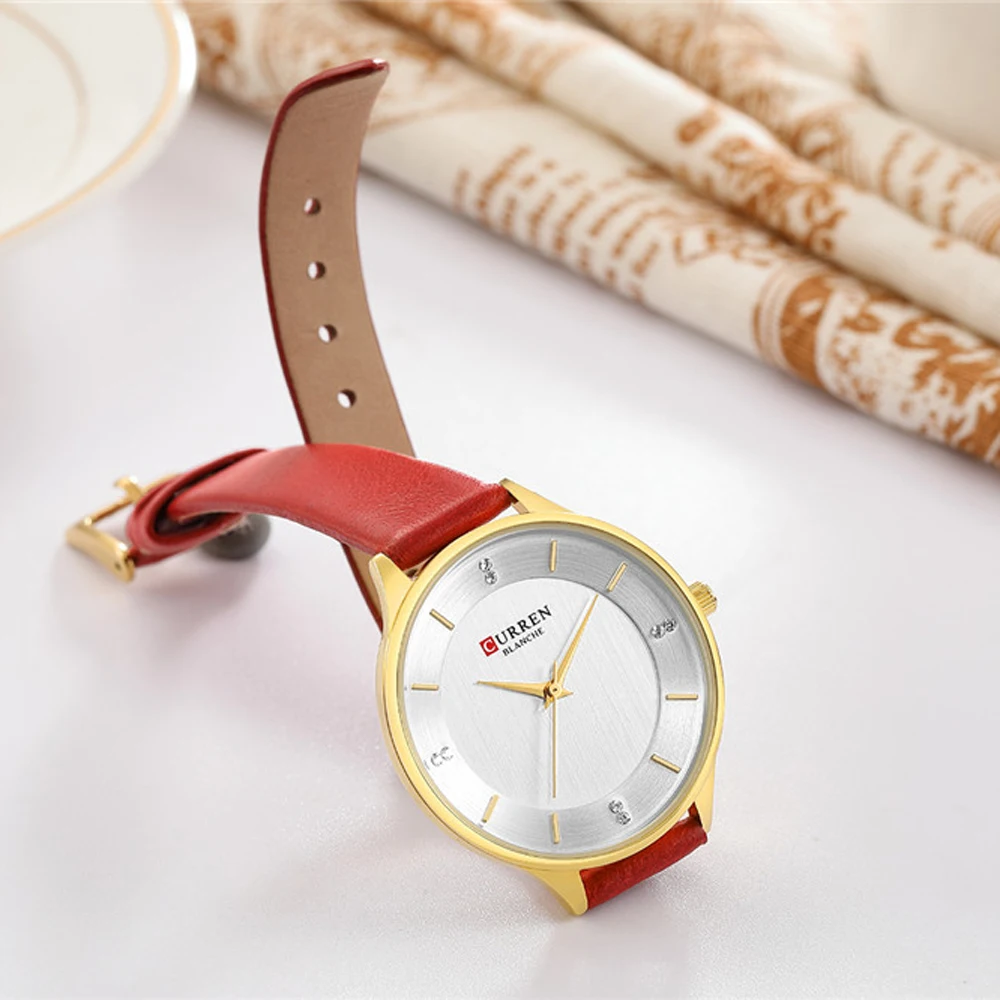 Часы CURREN женские наручные кварцевые, роскошные брендовые аналоговые с кожаным ремешком