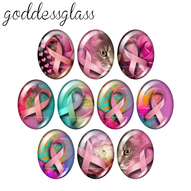 Розовая Лента Рак молочной железы Ювелирные изделия 10 шт. смешанные 13x1 8 мм18x2 5 мм30x40 мм Овальный фото стекло кабошон демо с плоской задней частью, украшения своими руками