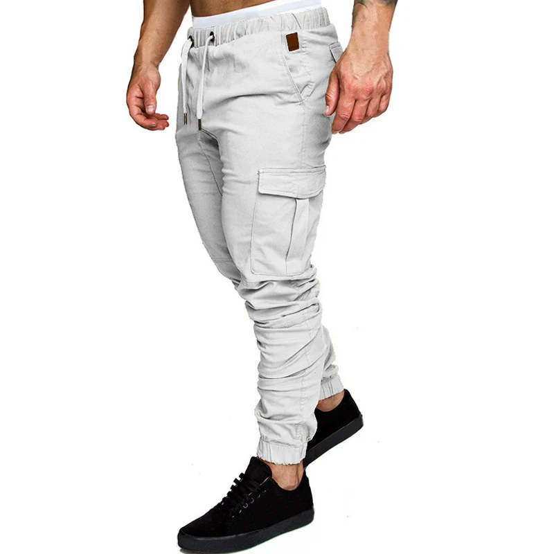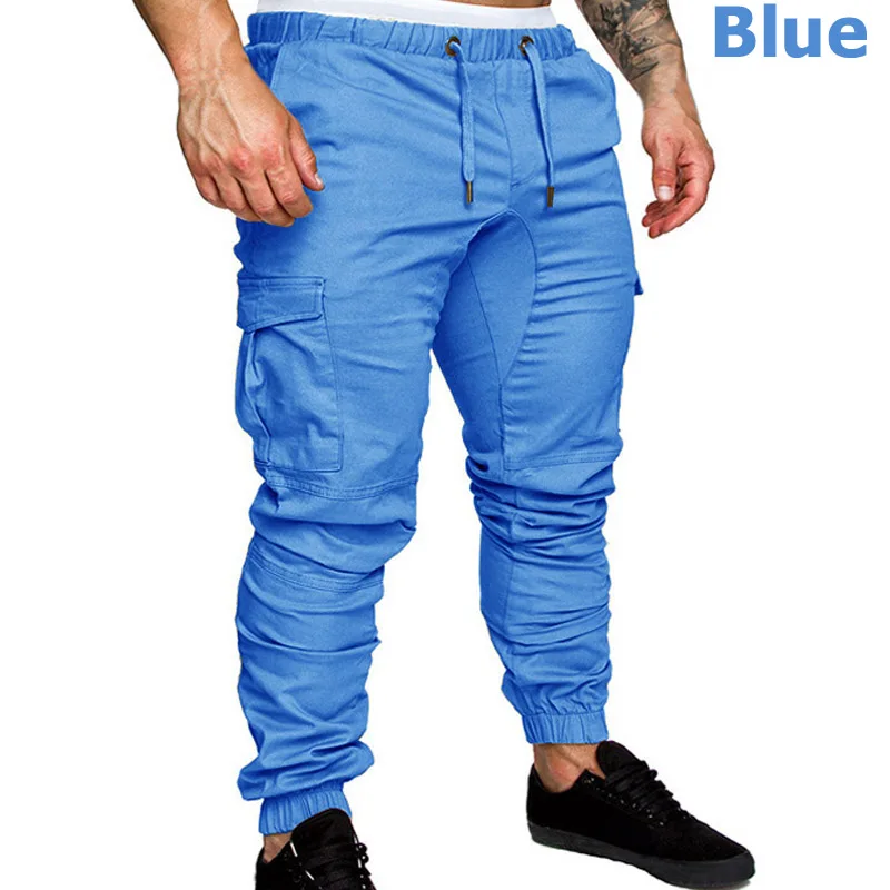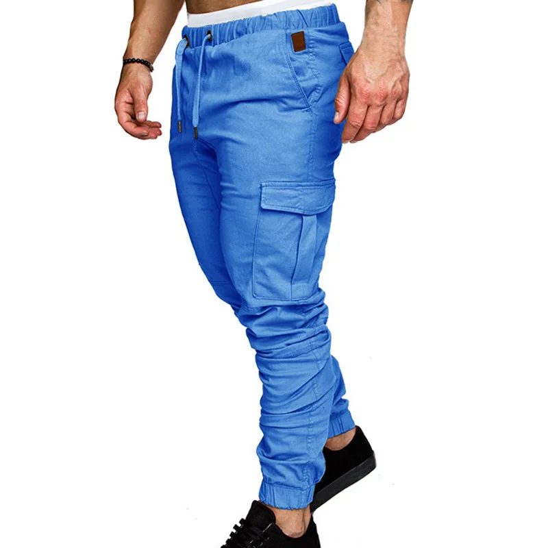 Мужские джоггеры 2020, Новые повседневные однотонные брюки со средней талией и карманами, мужские брюки, тренировочные брюки на завязках, уличные мужские брюки в стиле хип-хоп