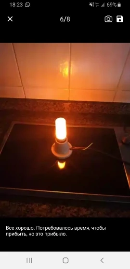 Очень быстрая доставка. Лампы работают как и должны. Единственно, что я ожидал более мягких переливов имитации огня. Я использую их без плафонов / рассеивателей и получается очень жёсткий свет и резковатые переливы огня. Глаза быстро утомляются