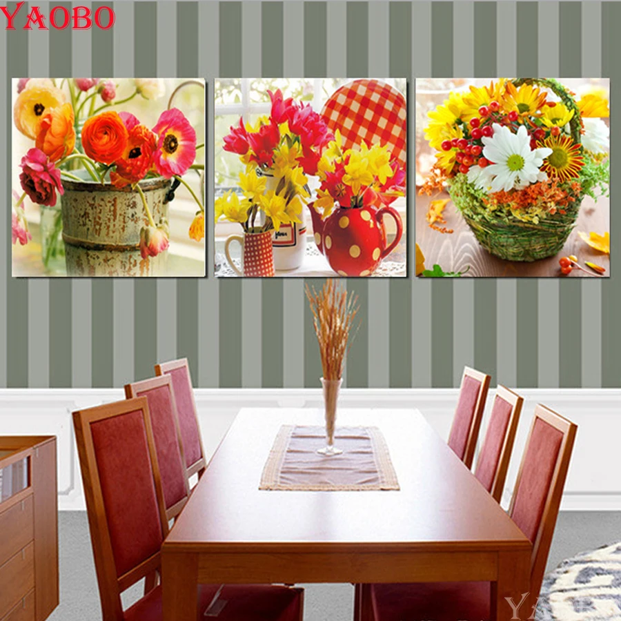 Diy, алмазная живопись натюрморт цветочных корзин кухонное украшение, 5d алмазная вышивка полный квадрат, 3 шт, мозаика алмаз искусство