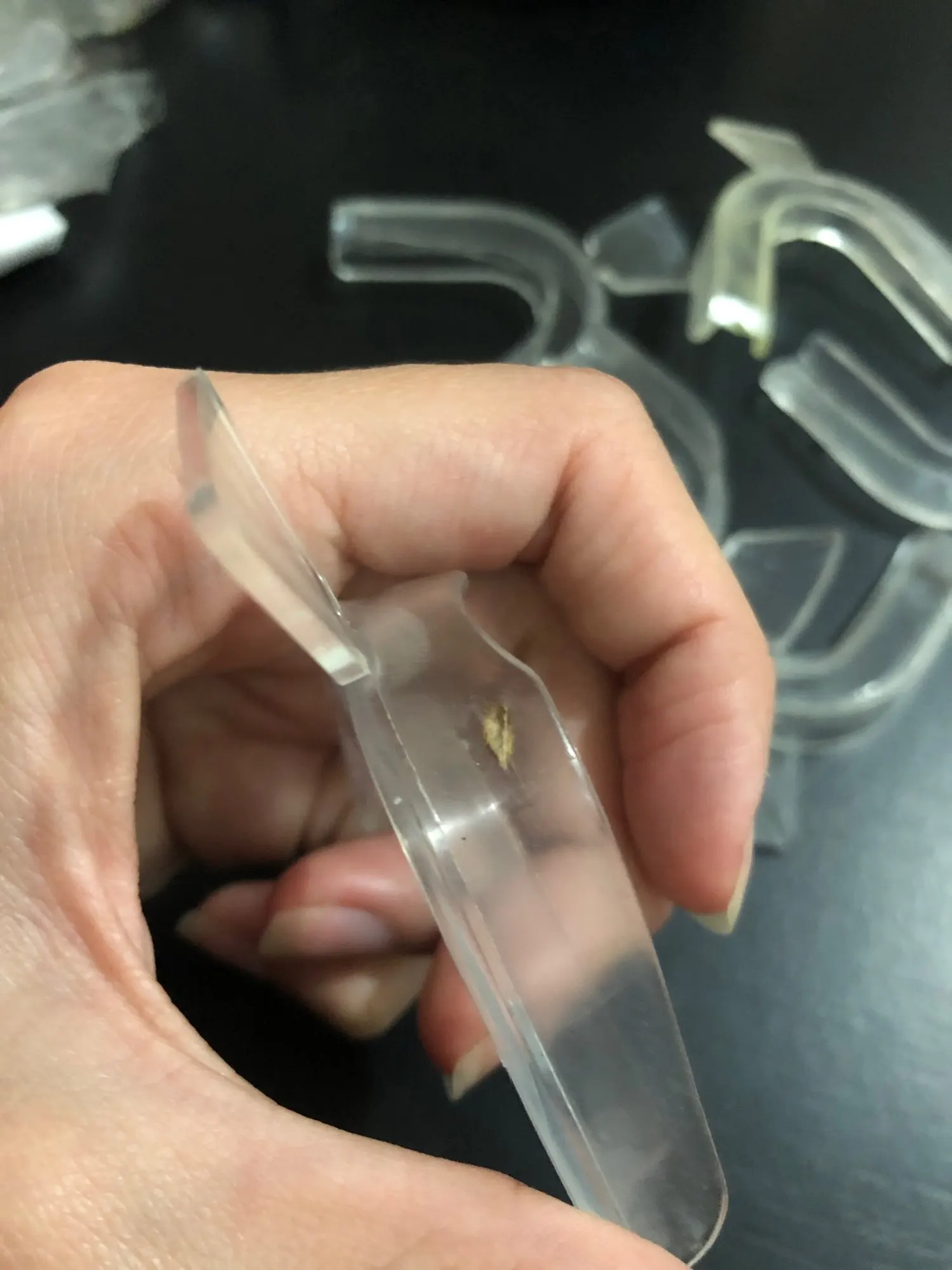 Товар пришёл очень быстро. Купила эти капы в первые. Возникли трудности с её варением, пробовала несколько раз. Только заливая в кипяток она размягчается. Но вся сжалась и уменьшилась в размере. В итоге получилась толстая и рот невозможно закрыть в ней, на фото видно. В итоге одну испортила, пыталась переварить и сильно растянула. Осталась ещё одна, потренируюсь на ней.