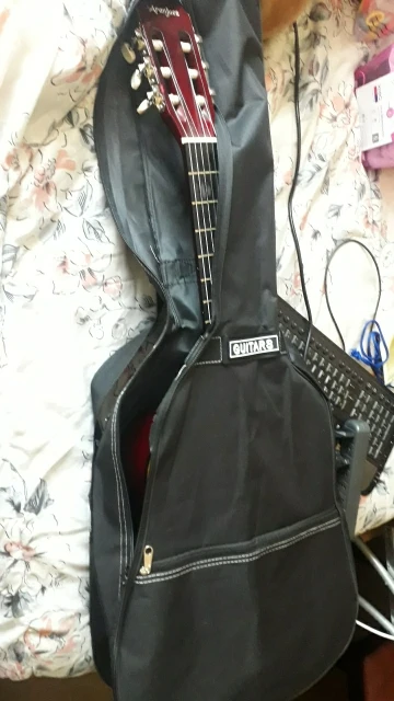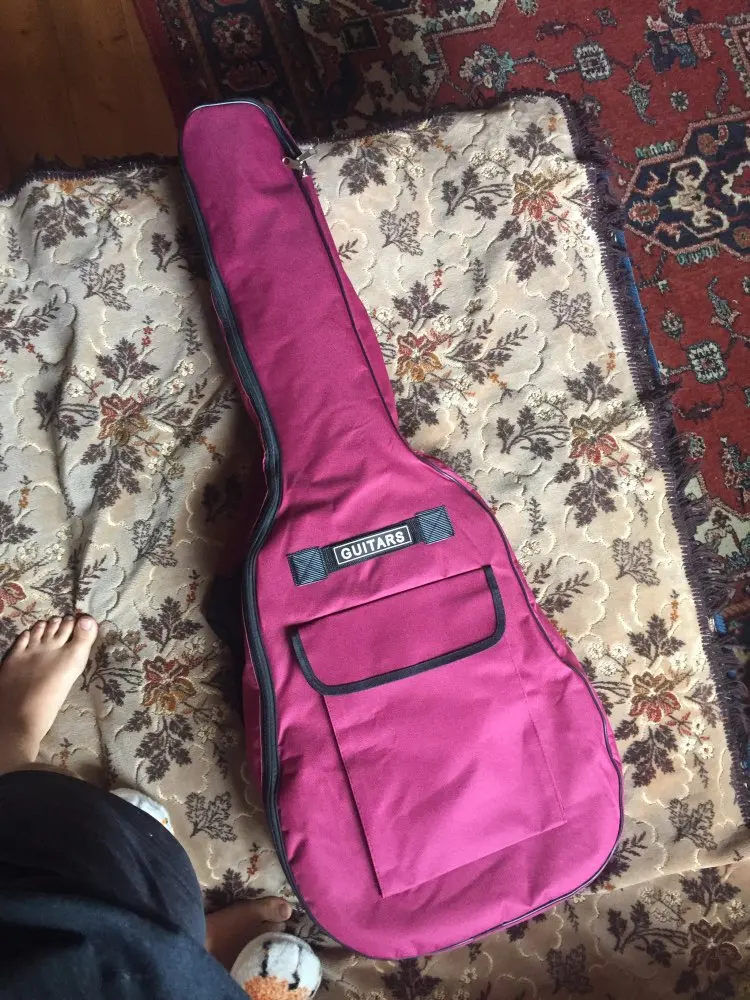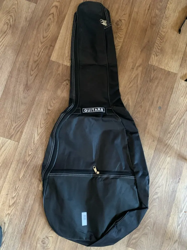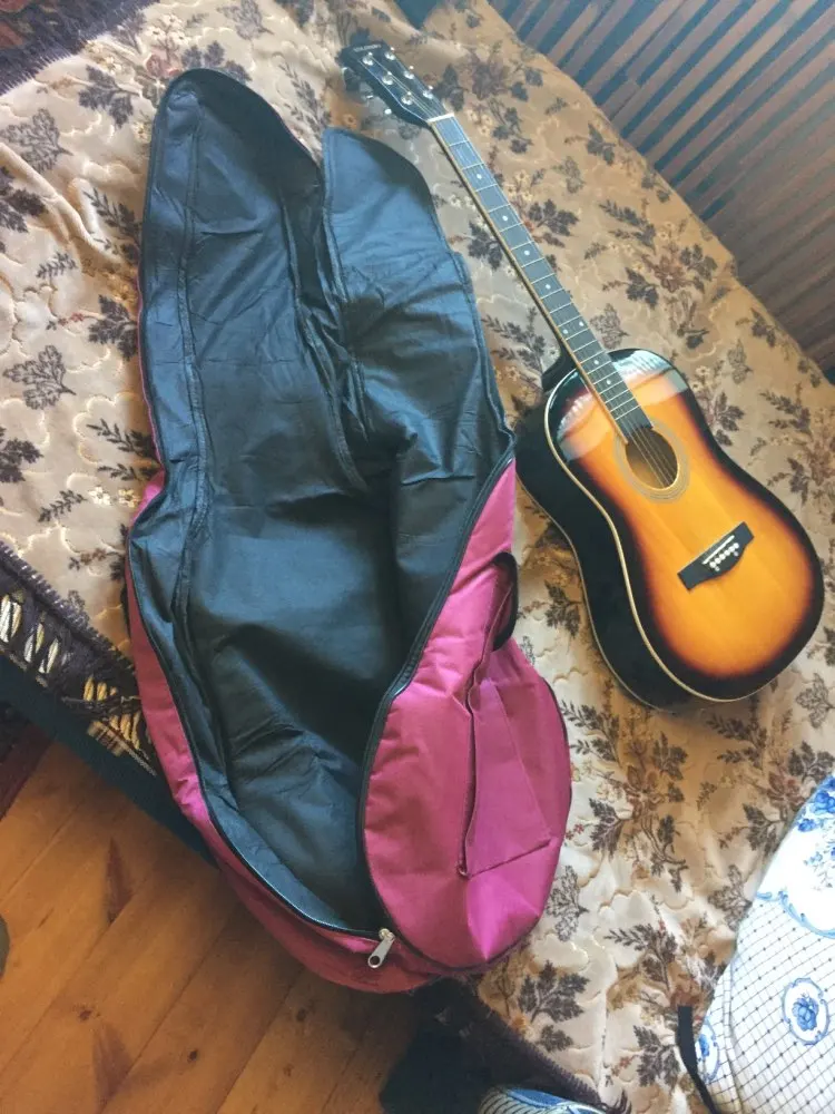 Чехол не сильно хорошего качества, но за такую цену сойдёт. НЕ ВОДОНИПРОНИЦАЕМЫЙ, ткань обычная, никак не защитит гитару от воды. Так же, гитара 38 дюймов еле в него влезла(Yamaha f310)