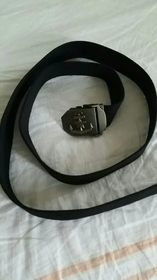 Ремень такой же, как на картинке. Предоставить реальные фото пока не имеется возможности. Все показатели на сайте магазина реальные. Ткань плотная, пряжка более темная, не стального оттенка, больше напоминает темную бронзу, но это всё субъективно. Пряжка тяжелая, замок на ней крепкий. сам ремень поставляется в маленьком мешке-упаковке. Отличный, оригинальный подарок за адекватную, небольшую цену. У нас такой ремень не найти.