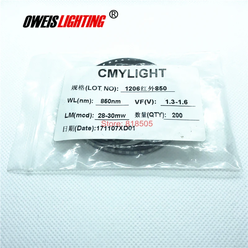 50 шт. 1206 850NM (28-30 мВт)1206 940NM (18-20 МВт) SMD СВЕТОДИОДНЫЙ 3216 ИК 20mA 1,3-1,5 v 3,2*1,6 мм Инфракрасный светильник
