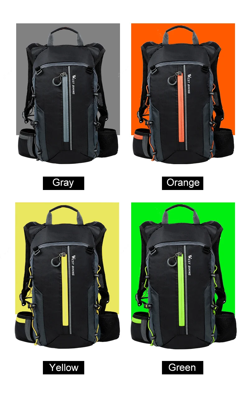 Цвета: черный серый/черный зеленый/черный оранжевый/черный желтыйВместимость рюкзака: около 10 лВес сумки: около 280 гРазмер: около 40*26*9 смСцены: Велоспорт, путешествия, туризм, альпинизм, туризм, бег, кемпинг Особенности:1. Водоотталкивающая и износостойкая нейлоновая ткань.2. Высококачественные молнии, легко застегиваются и расстегиваются.3. Дышащая мягкая задняя панель, Регулируемый грудной ремень и плечевой ремень.4. Боковые и передние регулируемые ремни для подвешивания всего, что вам нужно.5. Поясная упаковка для сотового телефона, ключей, небольших аксессуаров.6. Светоотражающая лента, обеспечивает безопасность езды на велосипеде