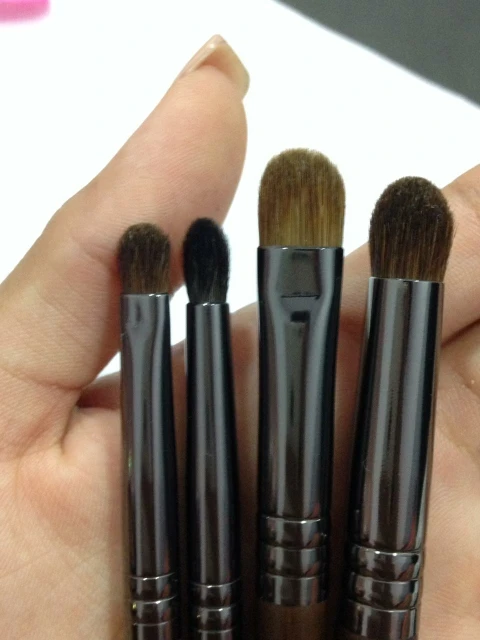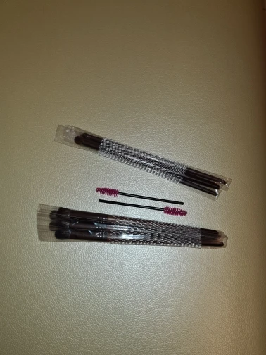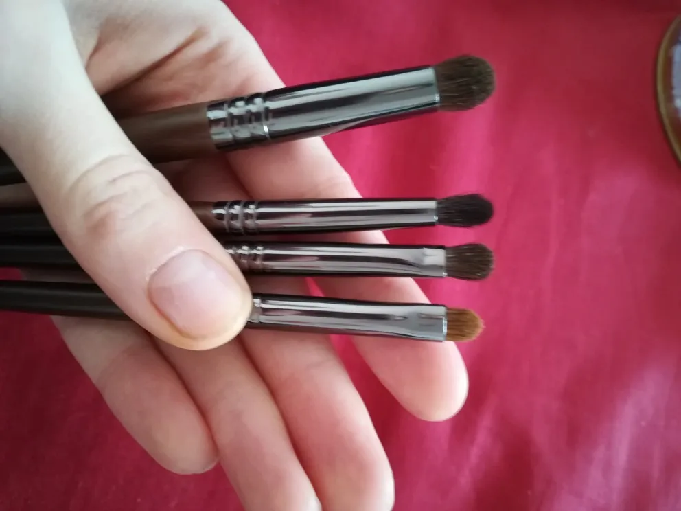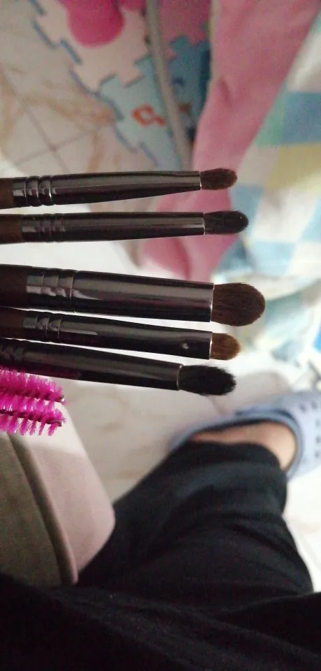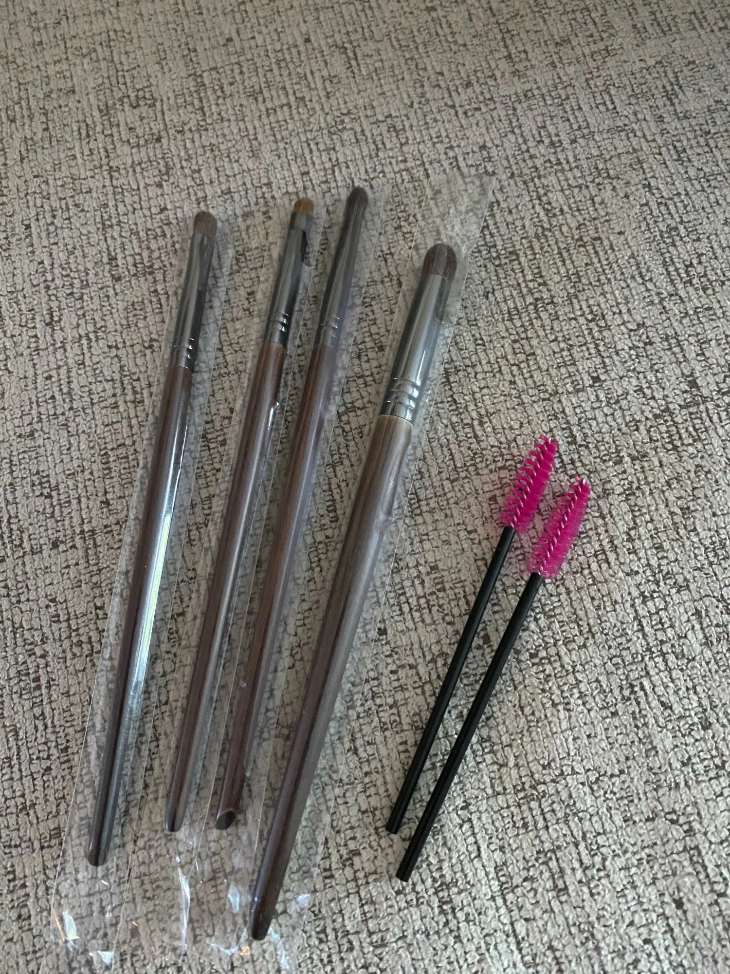 Я конечно не профессионал. Но кисти мне очень понравились. По сравнению с синтетическими кистями, набирают хорошо. Отлично растушёвывают. Ворс у кистей набит хорошо. Не линяют. (Лишь у одной кисти, кругленькой и заострённой к центру, выпало пару волосков). На фото постаралась показать как набирают кисти из синтетического и натурального ворса одни и те же оттенки теней. (Конечно тени от Fenty Beauty не самый удачный пример. Но для наглядности подойдёт). Продавец положил в подарок две щеточки для туши. Кисти из синтетики не очень хорошо растушёвывают и набиты не так плотно, как кисти из натурального ворса. Поэтому разница между кистями из синтетики и кистями из натурального ворса, - ощутимая.