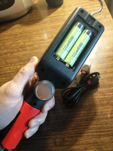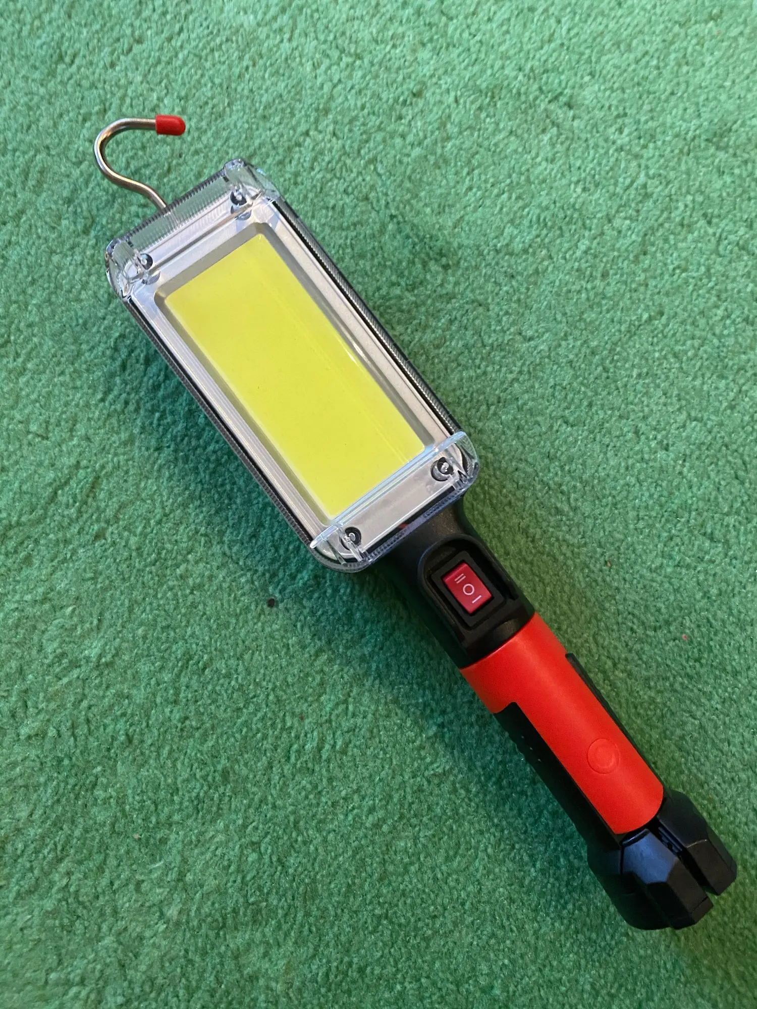 Хороший по качеству фонарь, есть 2 режима яркости, большой магнит держит отлично, два поменьше на торце рукоятки слабоваты, также есть поворотные прищепки. На самом светодиоде под пластиковым кожухом был мусор и шарики припоя (пришлось разбирать и чистить), аккумуляторы в комплекте слабые, советую взять нормальные. Упакован был слабо, коробка порвалась в дороге.