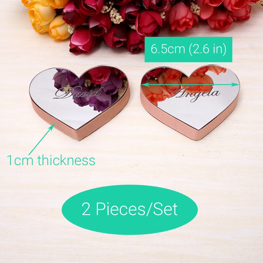 2 шт.компл. Персонализированная 6,5 см зеркальные сердца 1 см лента из вспененного этилвинилацетата с именем на заказ подарок для гостей свадьбы вечеринки Декор сувениры