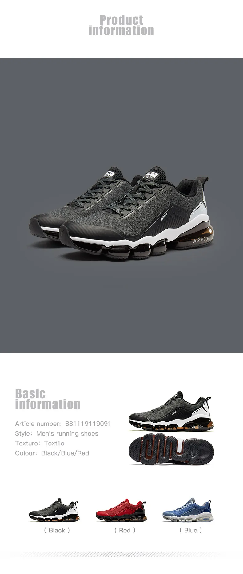 Мужские кроссовки Xtep AIR MEGA, осенне-зимние дышащие кроссовки на воздушной подушке, легкие, водонепроницаемые, спортивные, 881319119066