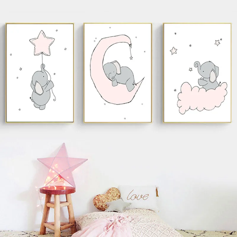 Мультяшные Луны и звезды, холст, художественные плакаты, картина со слоном, детское украшение для спальни