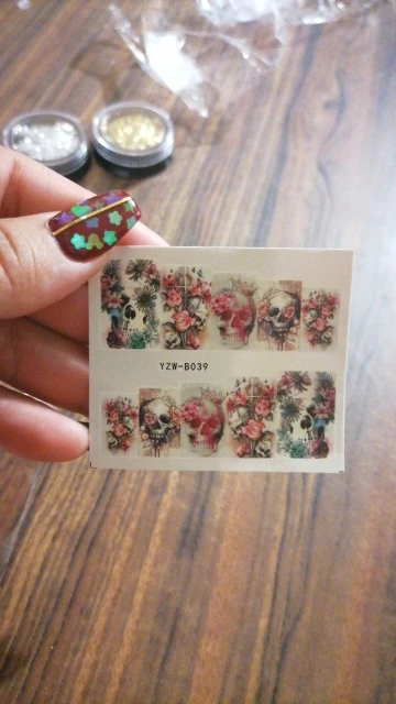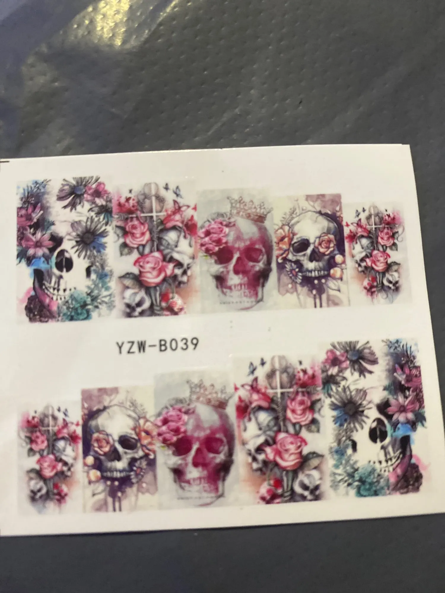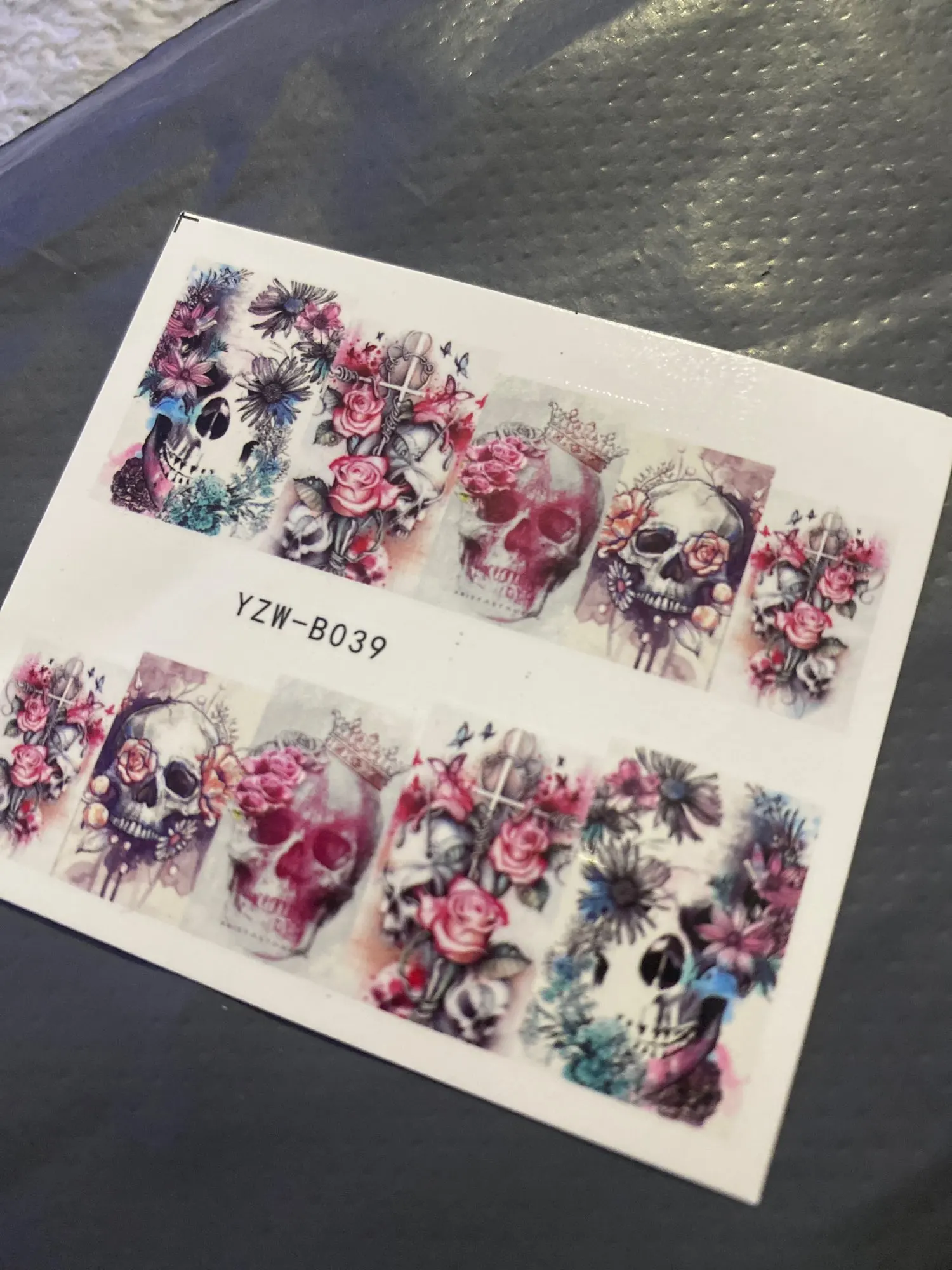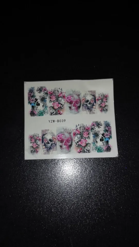 Водные переводные наклейки для дизайна ногтей Роза, череп, кости, дизайн, слайдеры для ногтей, наклейки, сделай сам, маникюр, YZW-B039