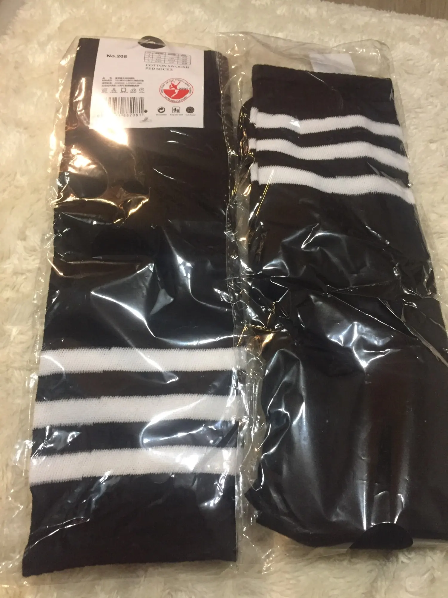 Носки женские хлопковые с 3 линиями, однотонные школьные хлопковые полосатые носки до колен, принадлежности для болельщиков для вечеринки, 4 цвета