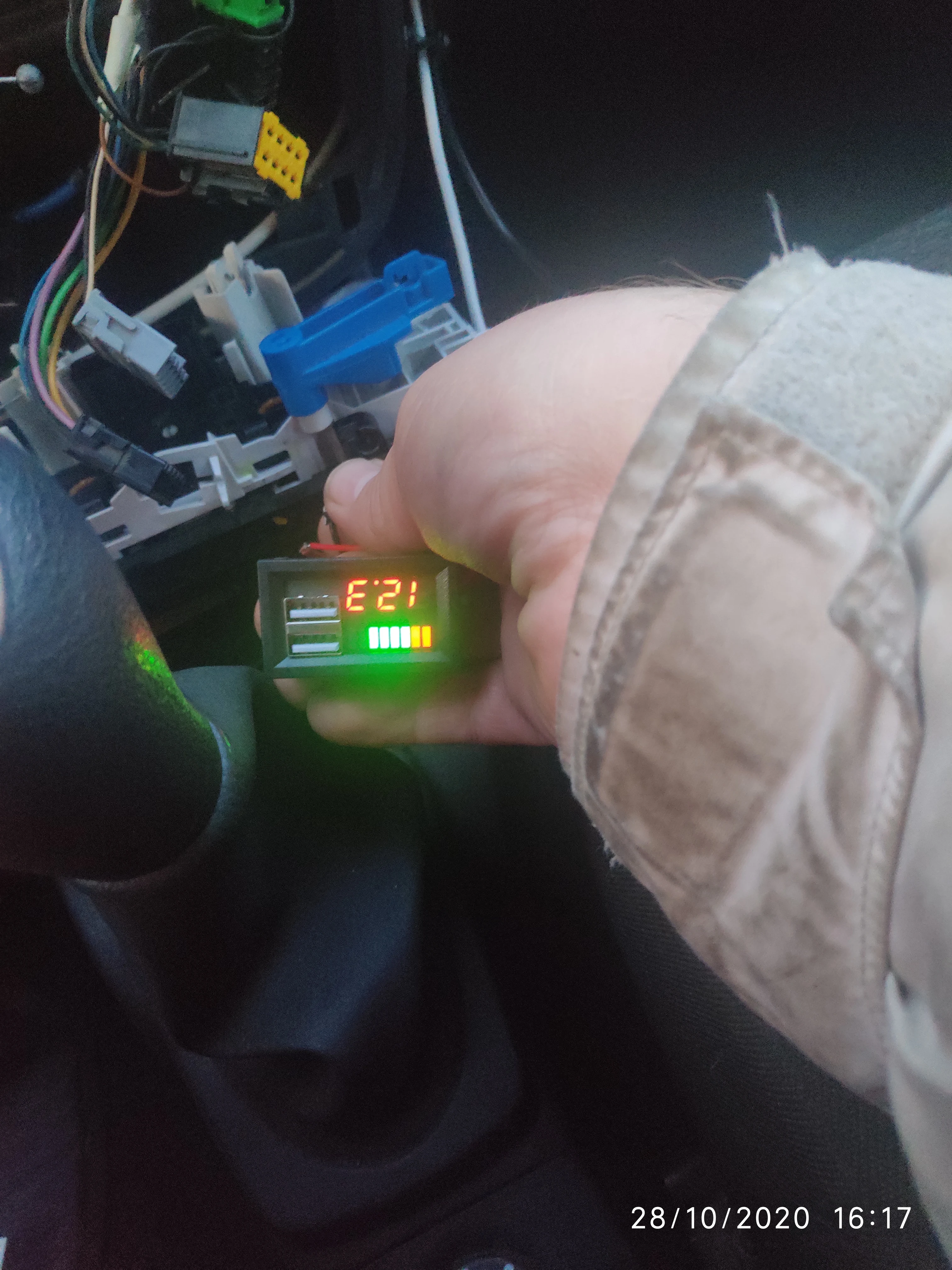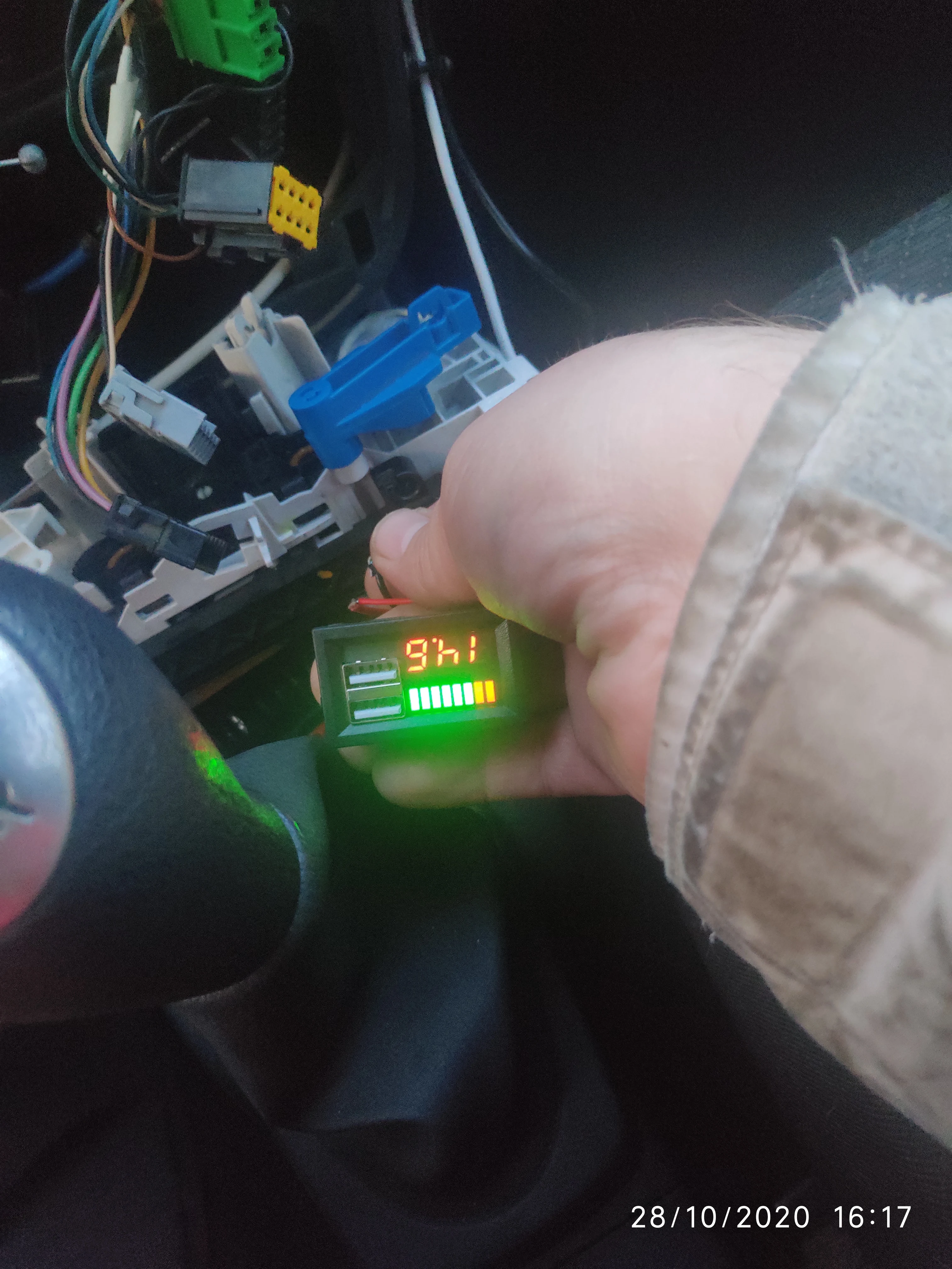 Напряжение показывает точно. Зарядка 2 ампера на гнездо держит легко. Напряжение 5,3В при 2А. Больше просто не пробовал. Подходит ровно вместо заглушки (одной из двух свободных) над магнитолой Шкода Октавия Тур. Рекомендую.