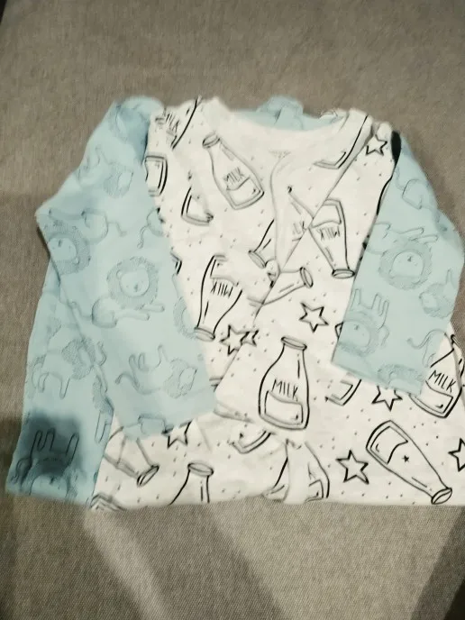 Пижамы хорошего качества, размер по размеру и хороший материал. Что касается дизайна, зеленый очень красивый и серый не так уж и много, но мне пришлось купить пару