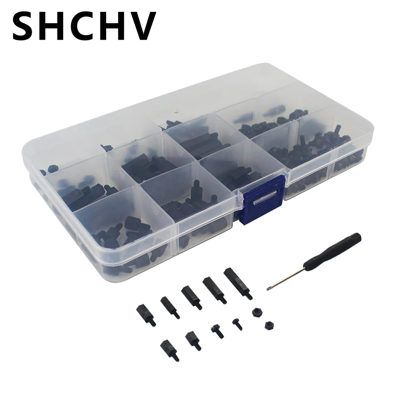 210 шт. в ассортименте, Винты M3 M2.5, нейлоновые гайки, проставки,...