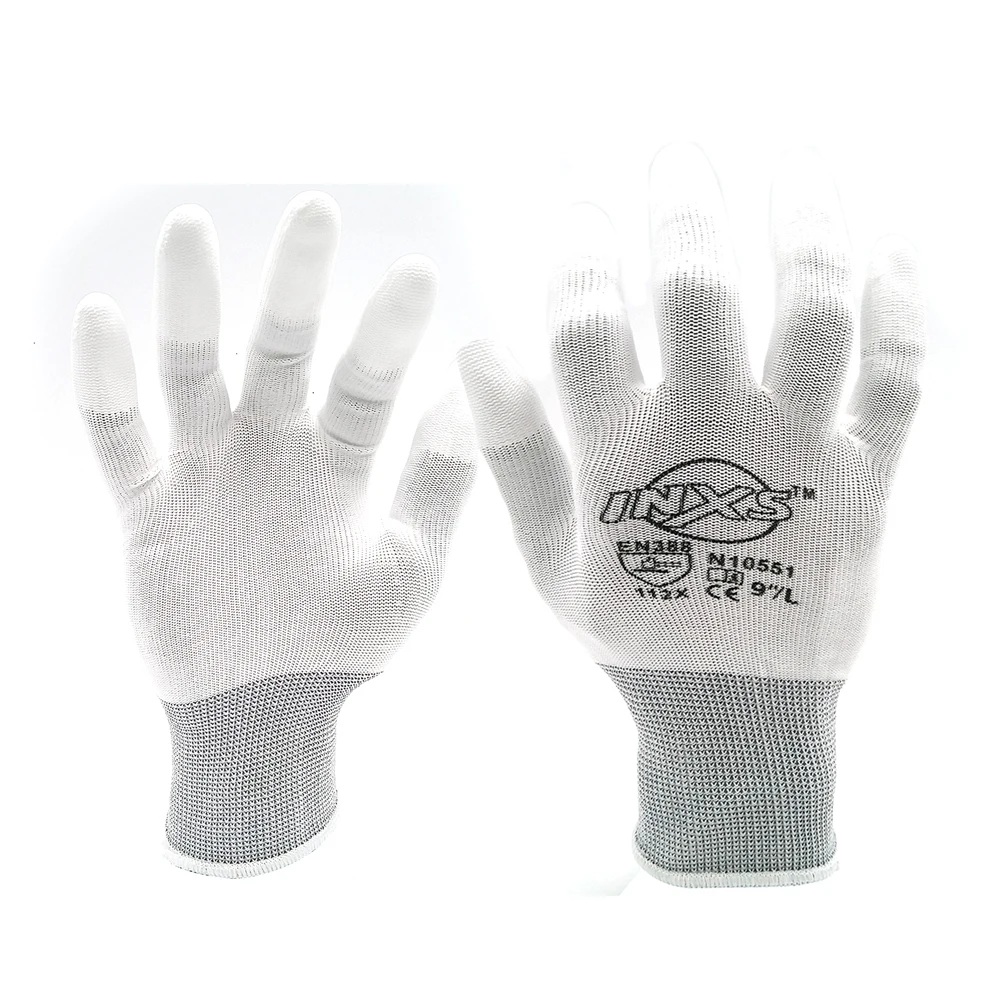 Покрытие для захвата пальцев и ловкости для более точного прикосновения. Точное обращение с небольшими предметами в сухой или светильник масляной среде, обеспечивая превосходную ловкость. Не оставляет следов на поверхности, дышащая и быстросохнущая. Сертификация: EN388 112X. Примечание: Мы отправляем случайные цвета, но качество товара будет таким же.