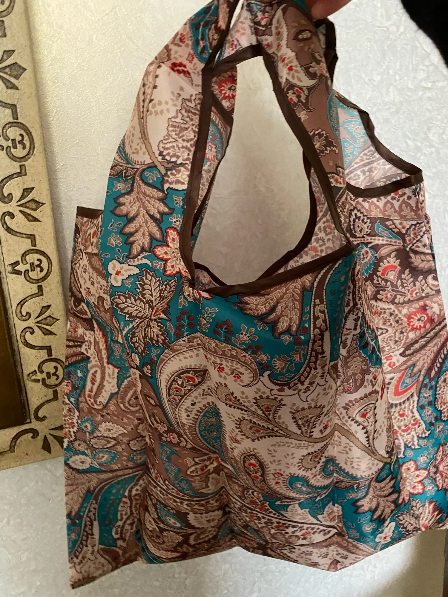 Отличная сумка- шопер, очень удобная, хорошо складывается в кармашек и можно положить в сумку,занимает мало места и не развернётся,удобно носить с собой.