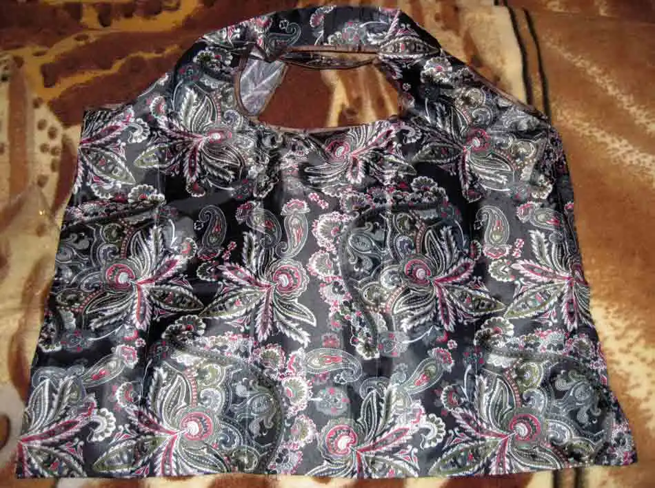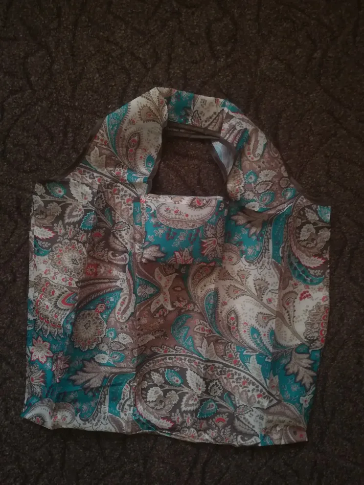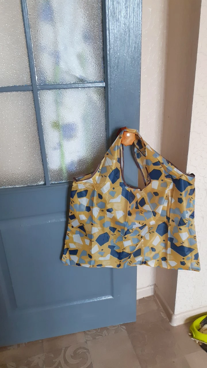 Отличная сумка! Прочная и вместительная. Легко сворачивается в маленький прямоугольничек и помещается в женскую сумочку