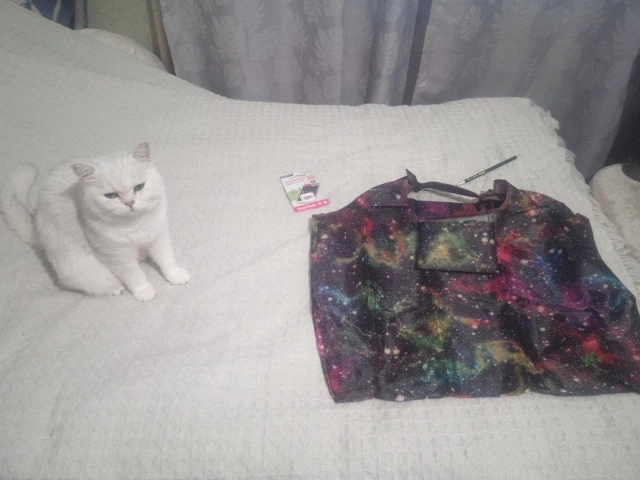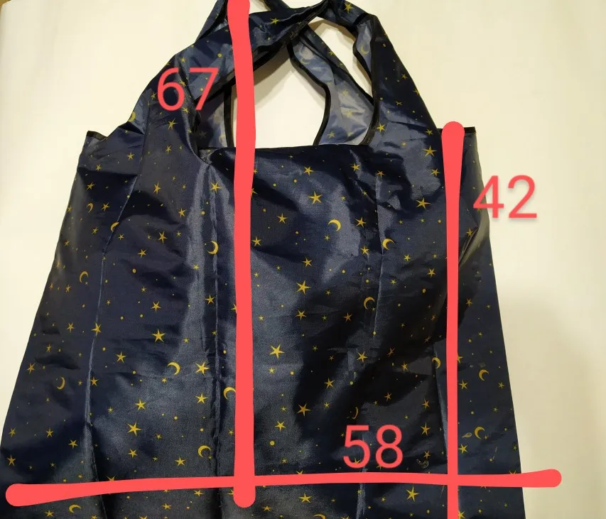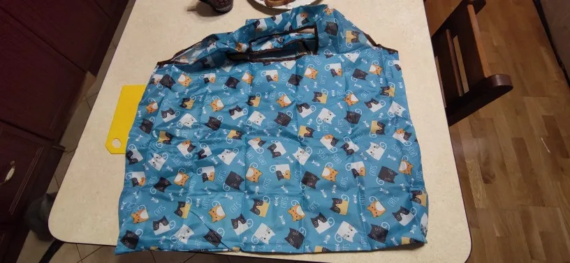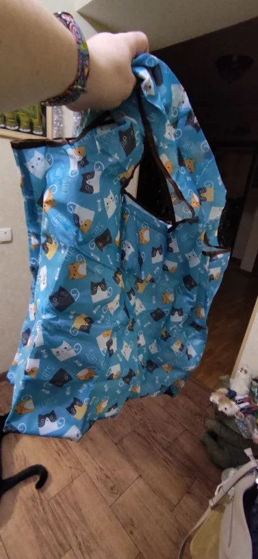 Прекрасная большая сумка, на замену пластиковым мешкам в магазине. Крепко прошита внутри бельевым швом. В нее слишком много входит для меня, поэтому я наполняю ее лишь наполовину. Очень милый принт, длина ручек позволяет повесить сумку на плечо. Трек отслеживался, приехала достаточно быстро.