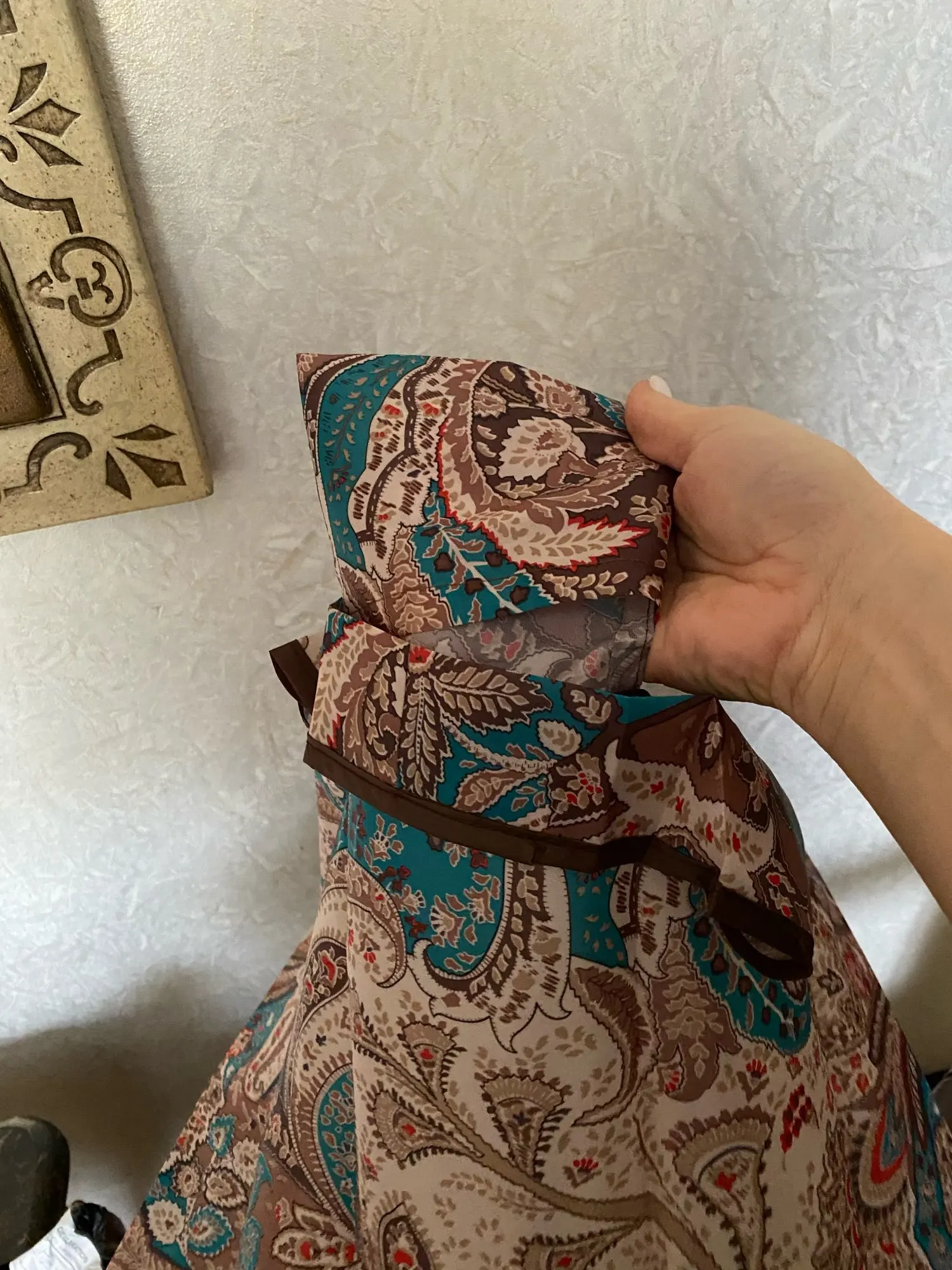 Очень красивая, очень большая, прочная ткань, хорошо Обработанная. Идеально подходит для переноски в сумке, потому что он ничего не весит и занимает очень мало. Очень быстрая доставка, приобретенная 11 ноября, прибыла 26 ноября комбинированной доставкой.