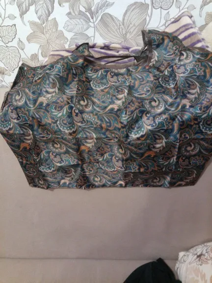 Отличная хозяйственная сумка! Большая, шуба помещается легко, и на вид и по ощущению крепкая. И в то же время компактно складывается. Продавец ответственный, отправил быстро. Рекомендую!
