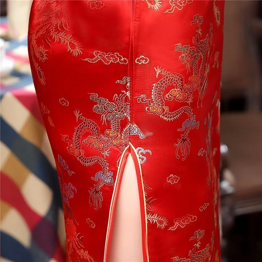 Женское длинное платье Ципао, традиционное китайское платье Ципао с разрезом, банкетное Ципао, размера плюс