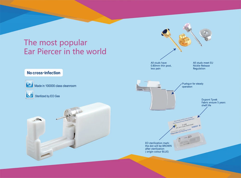 Ну смотрите. Товар хороший, свою функцию(прокол) выполняет. Но, если вы потом собираетесь носить золотую сережку(стандартный гвоздик),то дырочка от данного прокола не годится, золотой гвоздик в неё не влезет просто-напросто( И очень жаль что аппарат одноразовый.