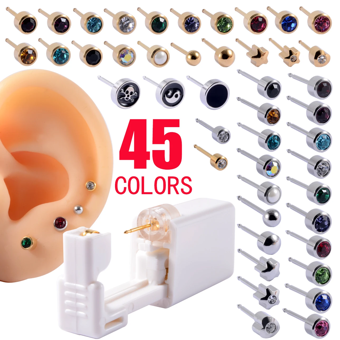 Одноразовый стерильный ушной прибор для пирсинга, хрящевого Козелка, спиральный пистолет для пирсинга, инструмент для пирсинга машинный набор, серьги-гвоздики, 1 шт.