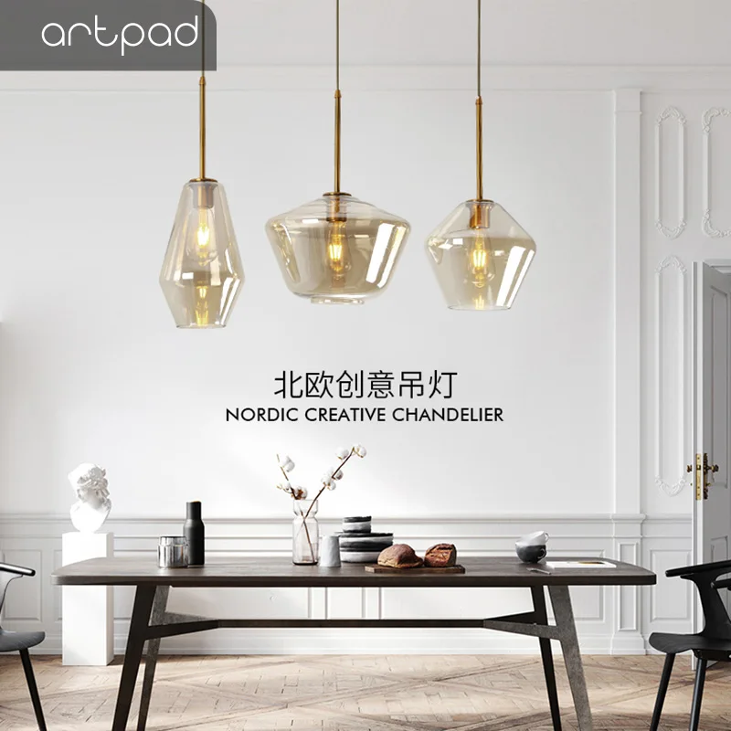 Стеклянная Подвесная лампа Artpad в скандинавском стиле с тремя головками, современный светодиодный светильник в стиле лофт для гостиной, столовой, кухни