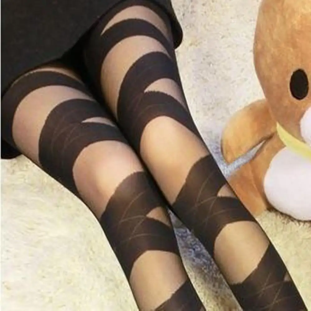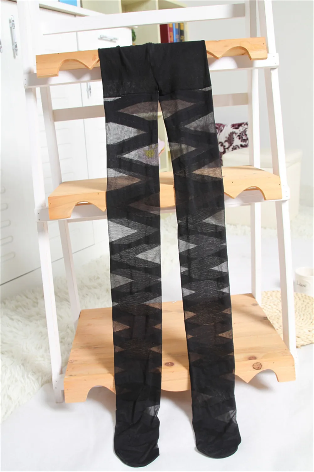 Чулки Женские Эластичные черные, выше колена, с перекрестным узором