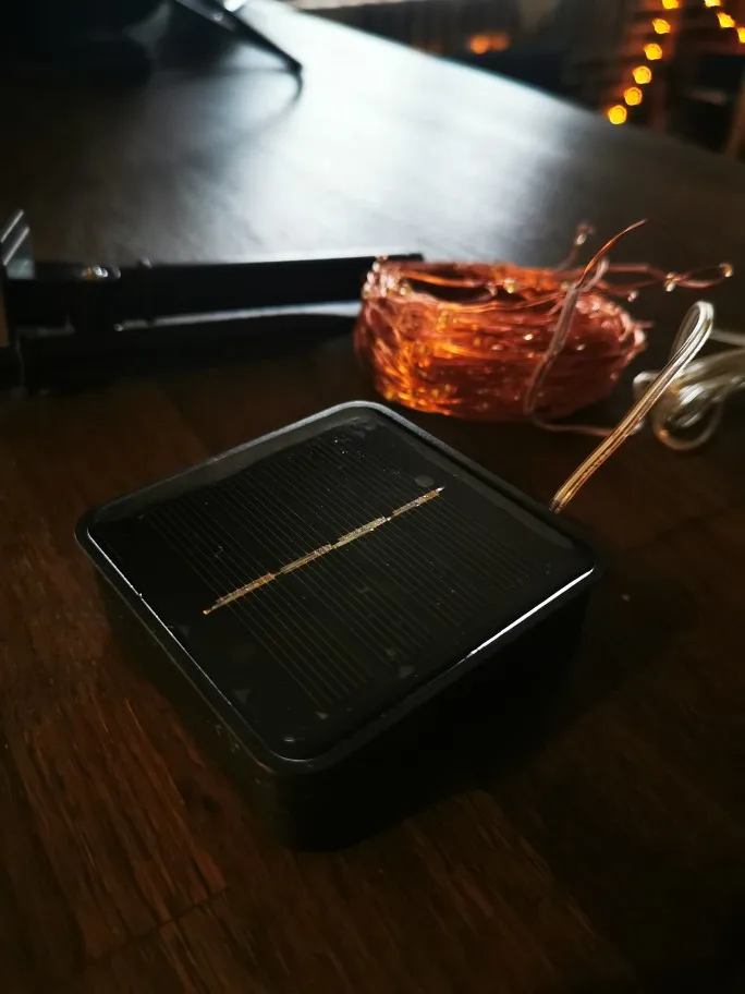 Очень классная гирлянда! Хватило на весь балкон и стеллаж с цветами. Солнечную батарею воткнула в горшок с цветком, направив в окно.