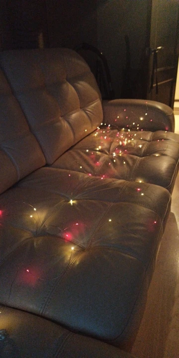 Выглядит совсем не так,как на фото.Это тоненькая проволока со светодиодами.Но все работает,поэтому оценку не снижаю
