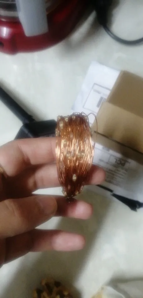 Товар соответствует описанию. Маленькие лампочки на медной проволоке. В темноте проволоку не видно вообще. Надавливайте на кнопку включения/выключения посильнее. Подвела только службы доставки. Четыре дня курьер по городу катал мой заказ и только на пятый день Доставил, После трёх жалоб на сайте......