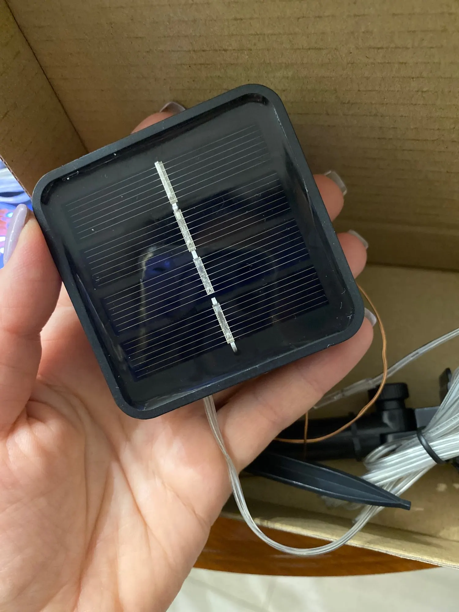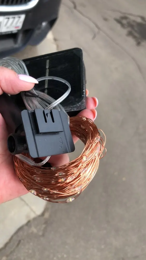 пришла какая-то проволока. я ожидала фонарики. расстроилась, но оказалось все прекрасно. Гирляндой украсим рождественскую ель. Зарядилась за 5 часов, светит всю ночь! на солнечных батареях! закажу ещё, украшу деревья. Супер, не ожидала! Доставили намного быстрее, чем обещали