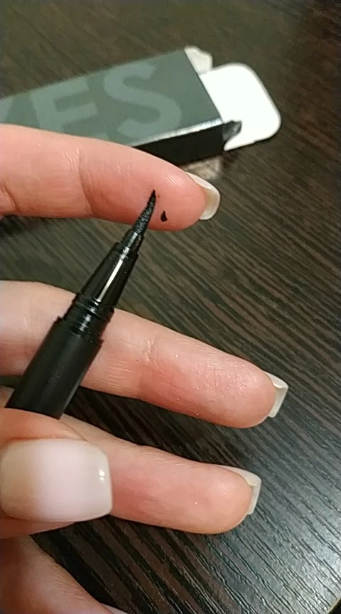 Отличная подводка. Но долго шла, 3 месяца, однако продавец продлевал защиту. Когда рисуешь, засыхает моментально, нет размазанных линий. Кончик мягкий, поэтому линии просто идеально можно вывести. Нарисовала на руке, уже трижды мыла руки с мылом, только немного цвет ушел. Я в восторге, рекомендую.