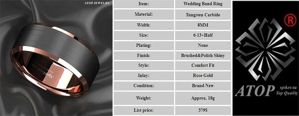 Мужское кольцо из вольфрама ATOP, обручальное кольцо 8 мм с матовой...