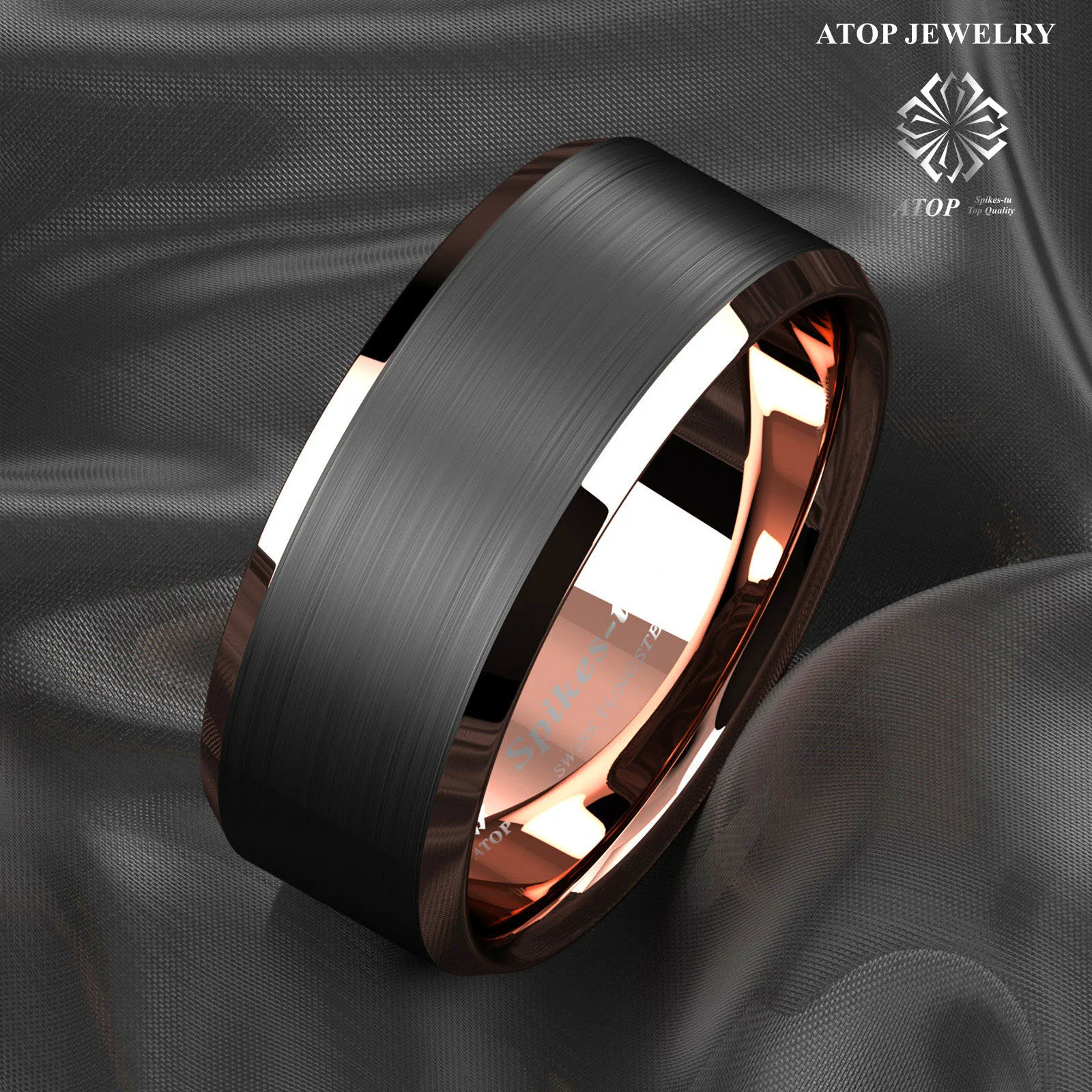 Вольфрамовое кольцо с краями 8 мм, матовый черный, розовый, золотой цвет, свадебные украшения