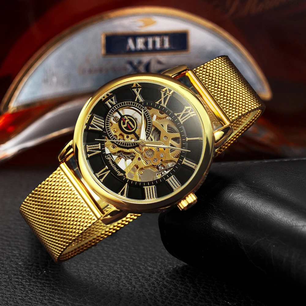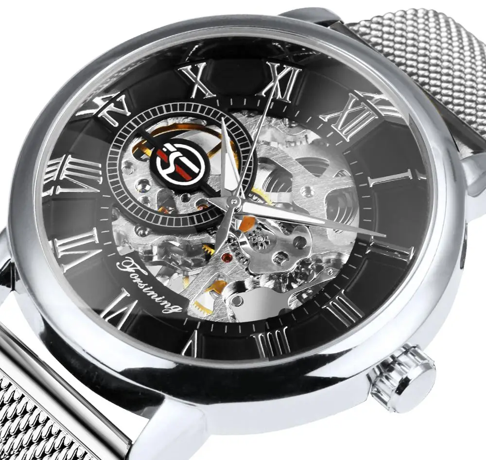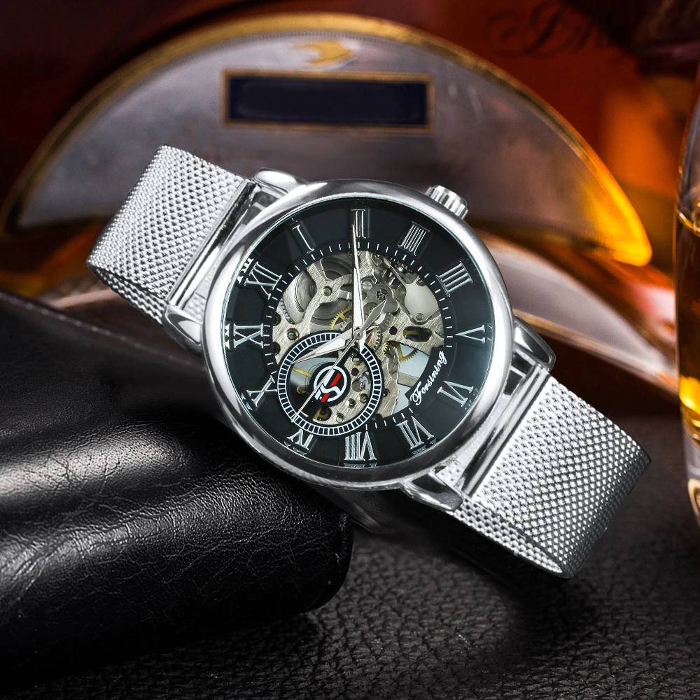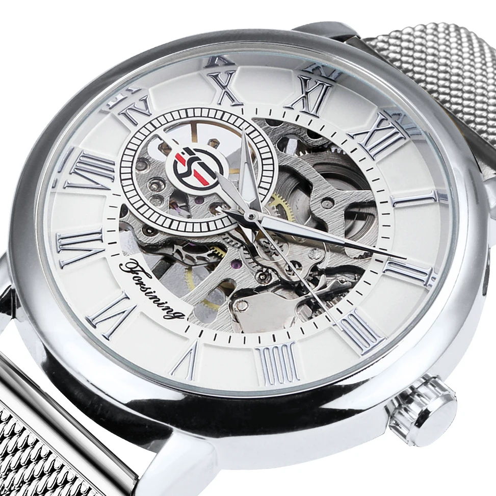 Часы наручные FORSINING женские механические, брендовые Роскошные ультратонкие элегантные с сетчатым ремешком и скелетоном