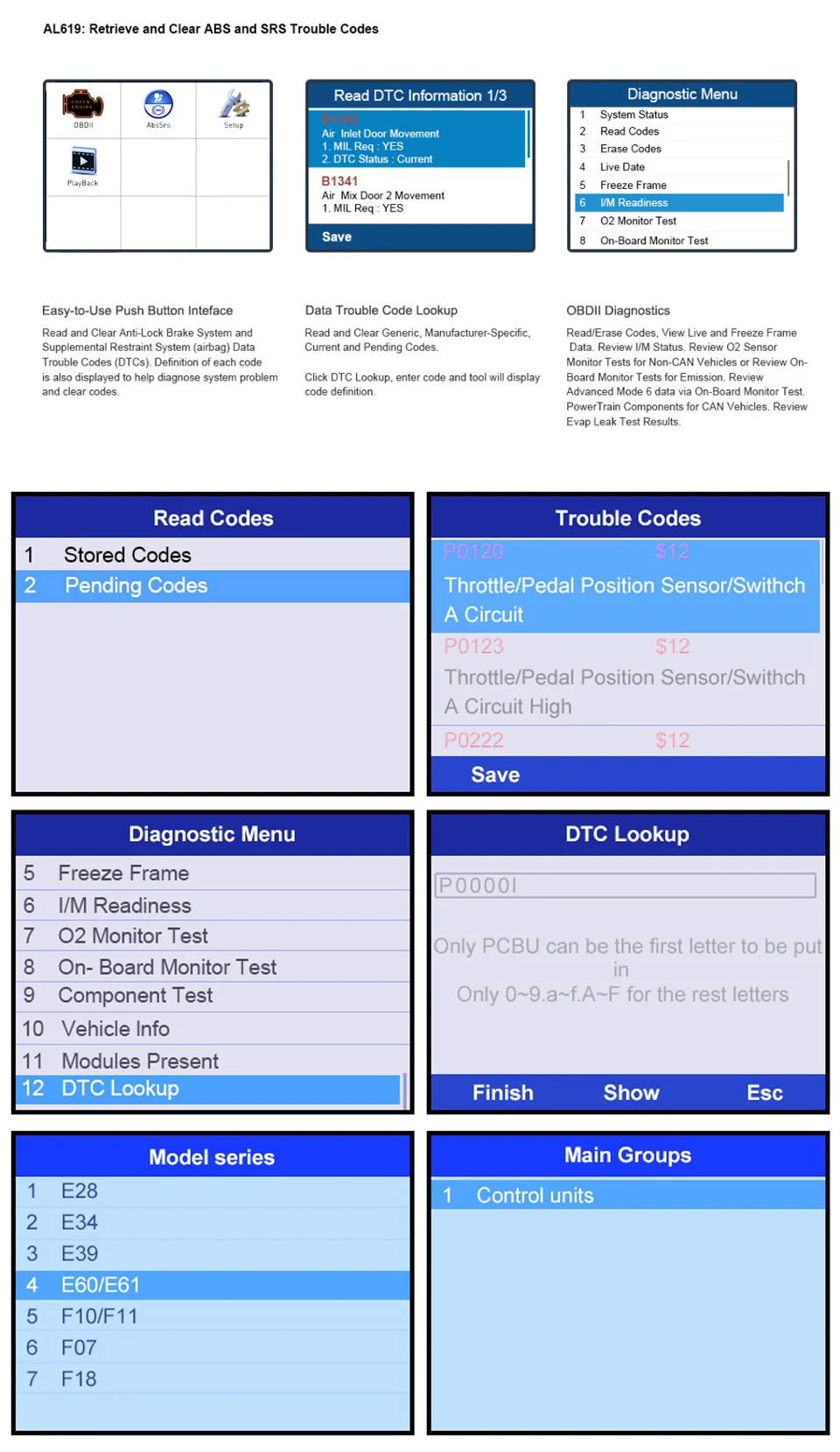 Диагностический инструмент ABS/SRS + CAN OBDII AutoLink AL619 создан, чтобы помочь вам определить, почему включен светильник индикатора неисправности или предупреждающий светильник ABS/SRS.