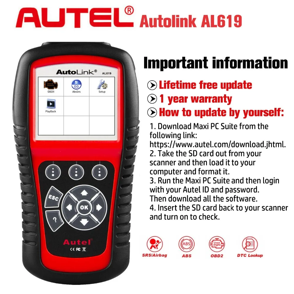Автомобильный диагностический сканер Autel AL619, сканер OBD2, считыватель кодов двигателя, ABS,SRS, автомобильный диагностический инструмент AL619, Автомобильный сканер