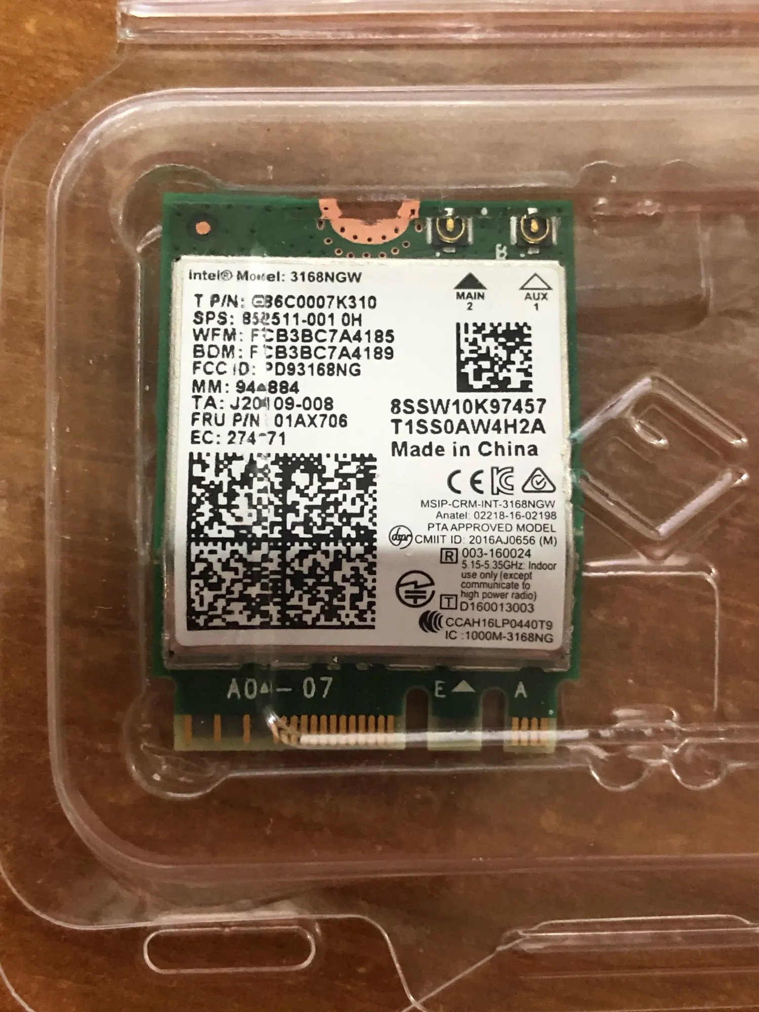 Доброго дня, Сетевая карта Intel AC-3168 получена, установлена в персональный компьютер, беспроводная сеть работает и блютус работает.