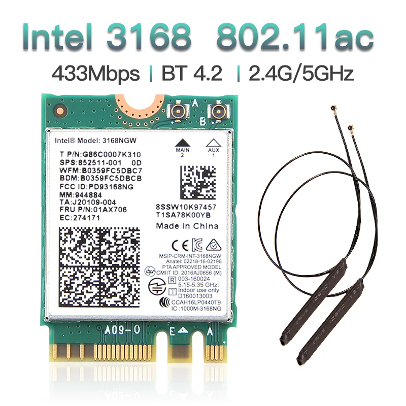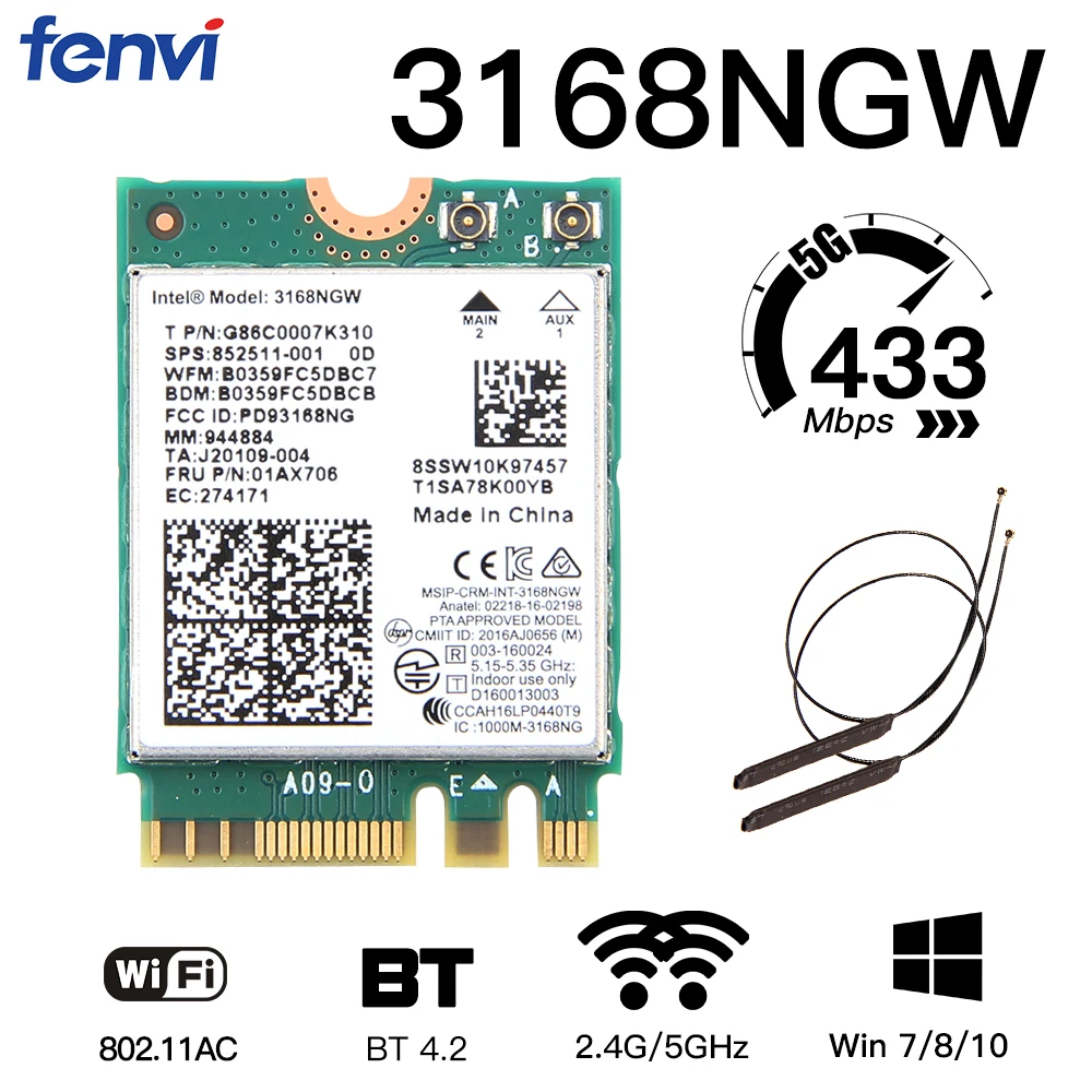 Двухдиапазонный беспроводной Wi-Fi-приемник, 600 Мбитс, Intel 3168 AC 3168NGW NGFF M.2 802.11ac, для Bluetooth 4,2