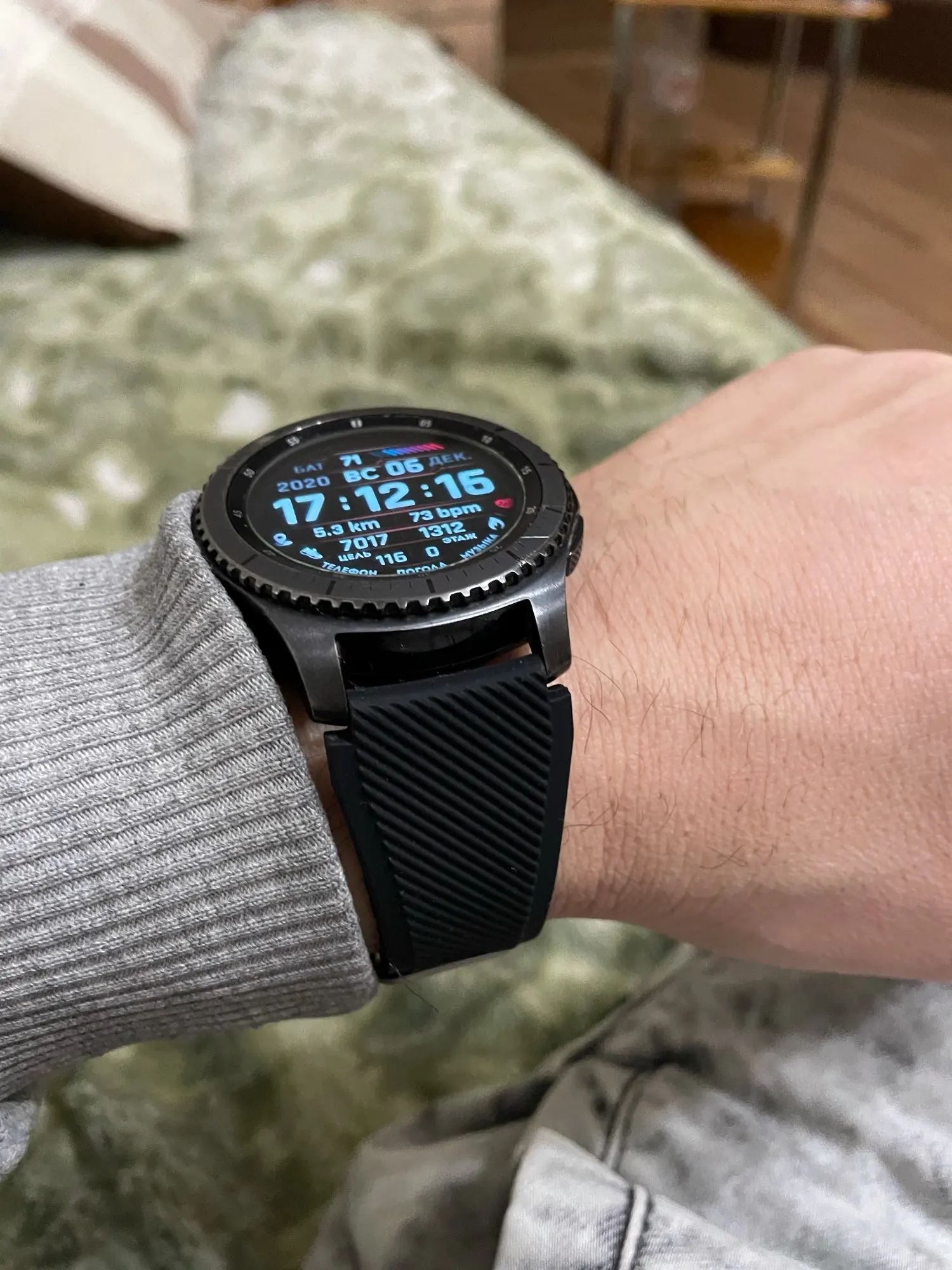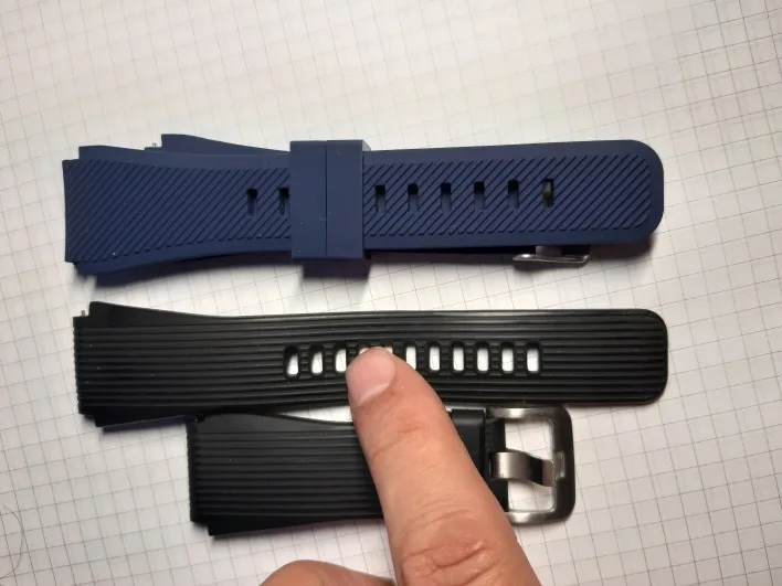 заказ был 14 сентября пришел в Ростов-на-Дону 5 ноября. по описанию он. примерил на часы- браслет встал как родной. по ощущениям резино-пластик немного жёсткий чем родной. по размеру брал 22 мм соответствует размеру L Galaxy Watch 3. Рекомендую продавца. к часам теперь докуплю синюю накладку на корпус.