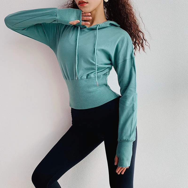 Wmuncc спортивная куртка с капюшоном, Спортивная рубашка для занятий йогой, Топ для женщин на осень и зиму, хлопковые толстовки с длинным рукавом и отверстиями для большого пальца