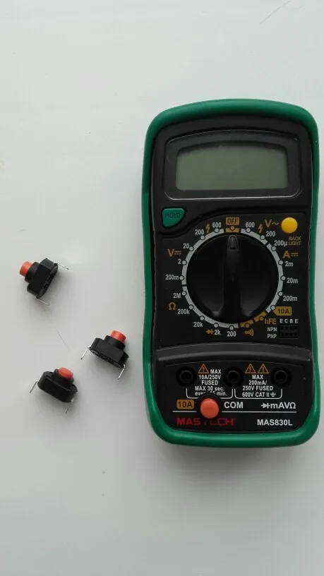 Здравствуйте! Кнопки отличные, срабатывают чётко, слегка выступает при нажатии смазка, пластик ровный, качественный, вывода мощьные. Превёл мултиметр на li-on аккумулятор и поставлил на dc-dc преобразователь переключатель, выглядит как родной. Вообщем доволен. Шли не быстро.