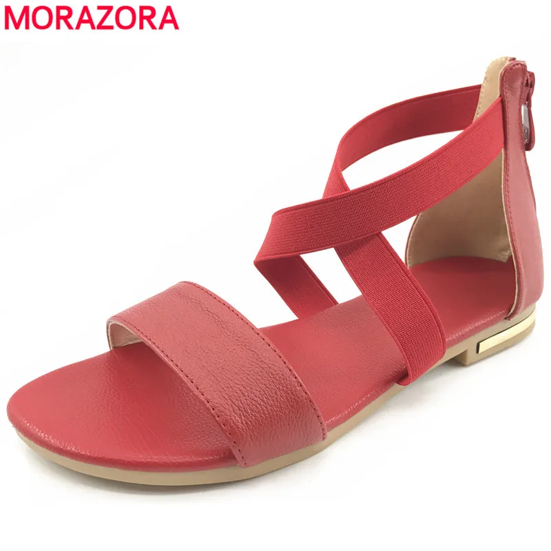 Женские сандалии на плоской подошве MORAZORA, черныекрасные сандалии из натуральной кожи на молнии, на лето, 2019