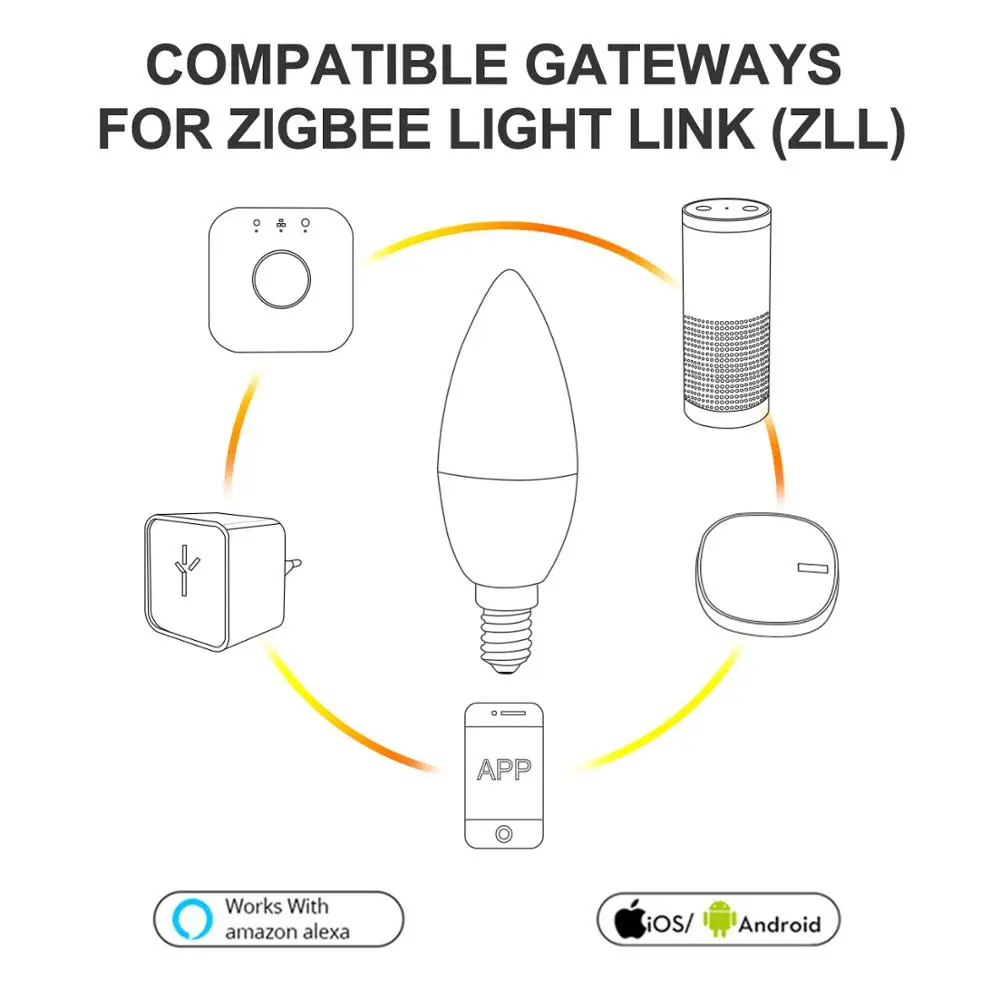 G светодиодный OPTO Zigbee лампы в форме свечи лампы 4 Вт RGBCCT приложение Smart Phone Управление AC100-240V E12E14LED светильник работать с Alexa Echo плюс много шлюз